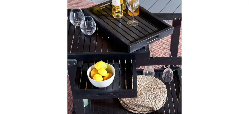 Backyard barbecue chefs will appreciate the carefree luxury of a portable serving cart like the portable Orland Tea Trolley. Crafted of eco friendly acacia wood in a sleek gray finish, Orland is loaded with amenities like glass holders, a drawer, and convenient serving tray.