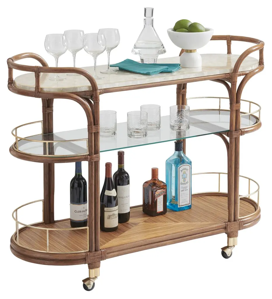 Palm Desert Toscana Rattan Mobile Bar Cart, Natural