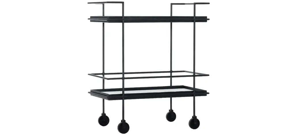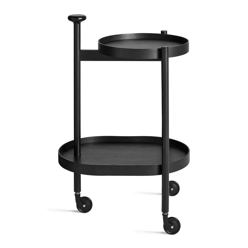 Fixed wood shelves, fine-tuned proportions and thoughtful details make this light and nimble cart the ideal co-host. Pleasantly rounded knob lets you steer one-handed while swivel casters let you spin it any which way to refresh drinks in a flash.