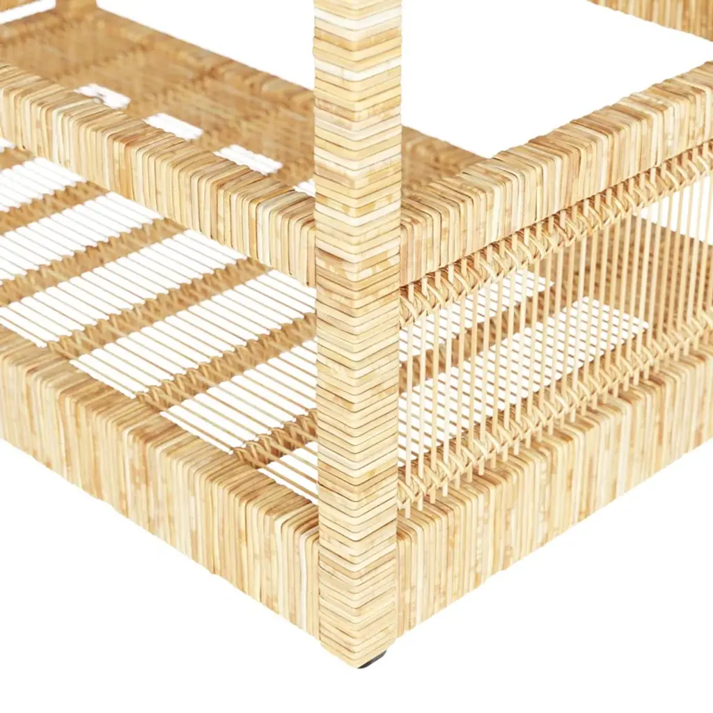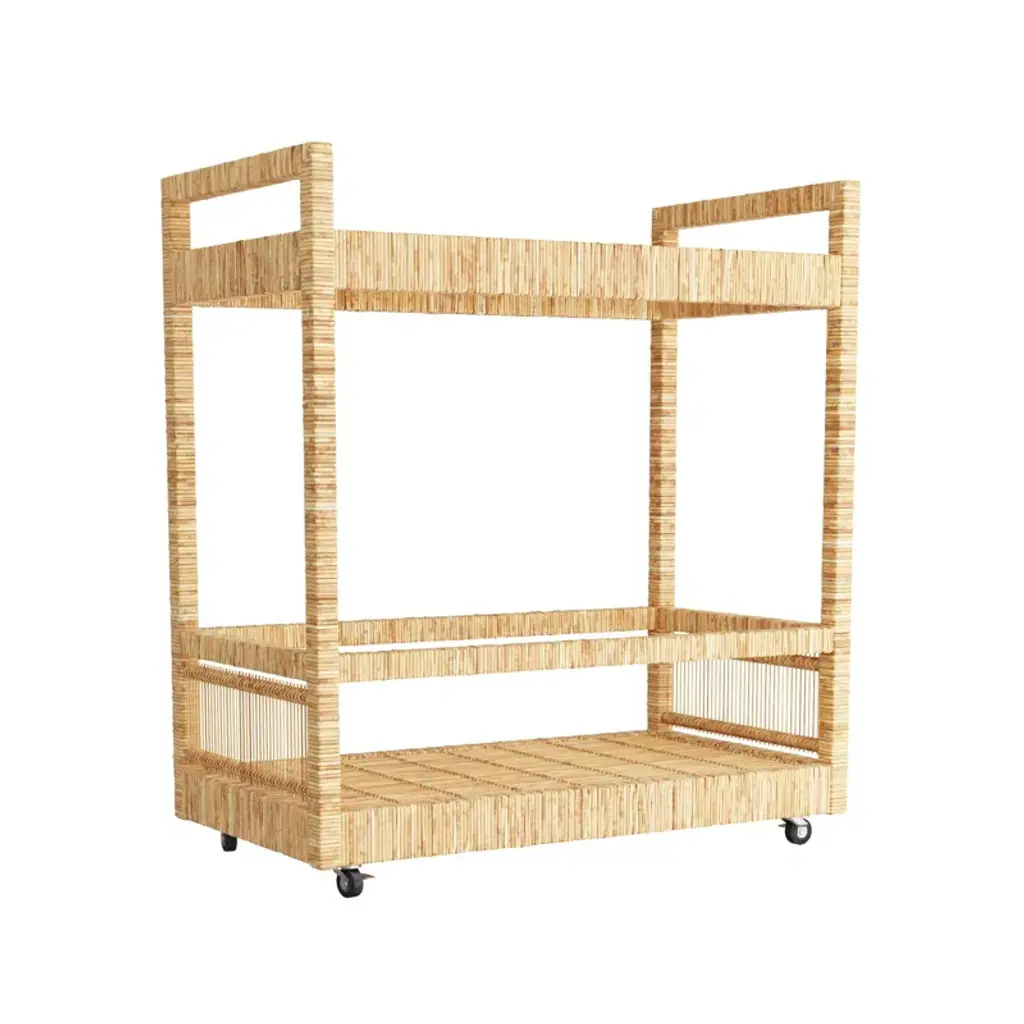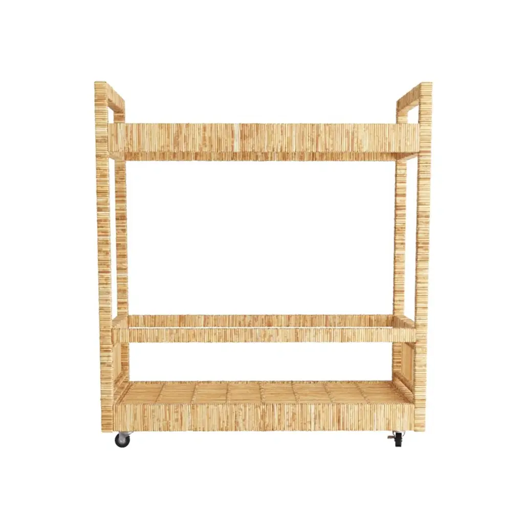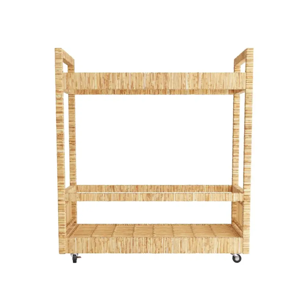 The Montgomery Bar Cart is the perfect fill-in. Wine and dine your guests in style with this rattan bar cart on wheels.