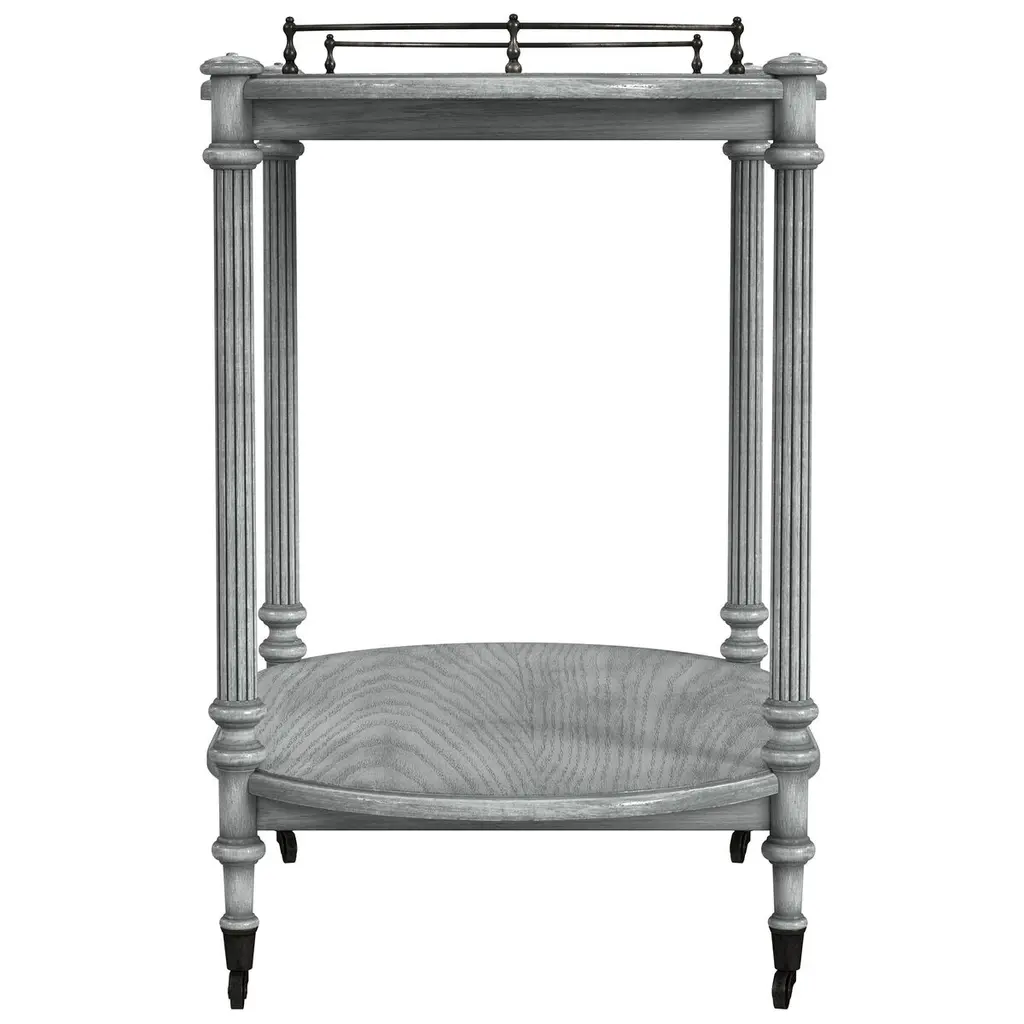This charming cart can be used as both a bar cart or tea server and is a wonderful addition to any space for casual or formal entertaining. Handcrafted from select hardwood solids and wood products, it features an antique brass finished gallery and casters.