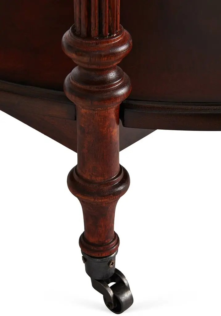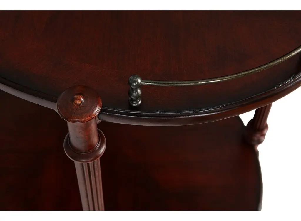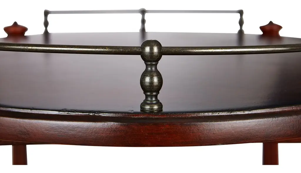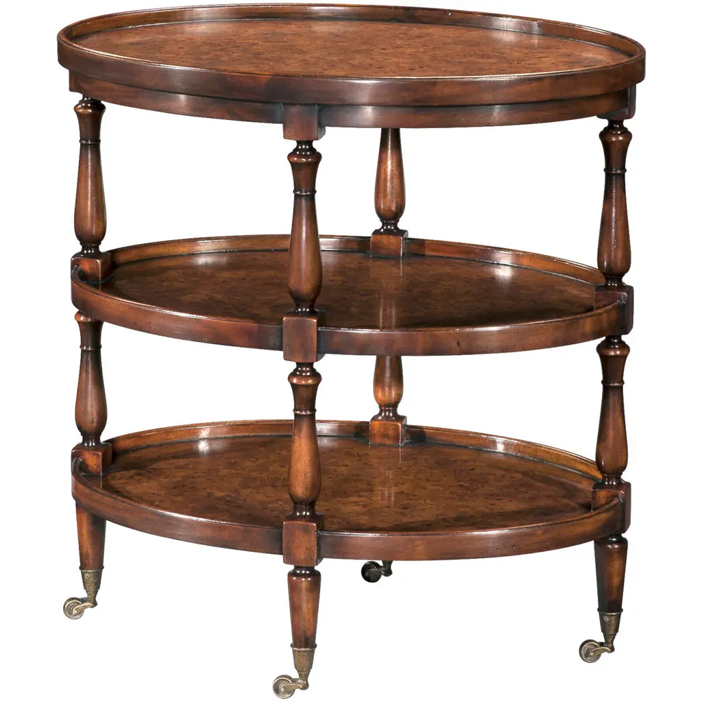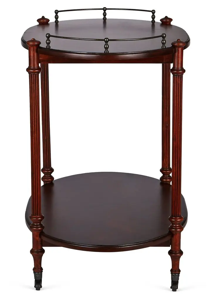 This charming cart can be used as both a bar cart or tea server and is a wonderful addition to any space for casual or formal entertaining. Handcrafted from select hardwood solids and wood products, it features an antique brass finished gallery and casters.