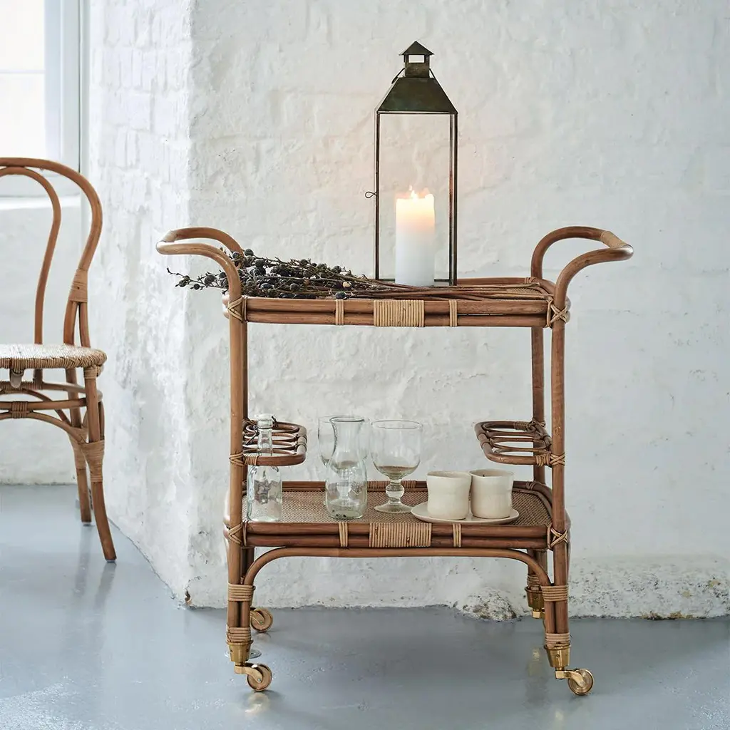 Trolley Roda Rattan with all structure in handcrafted rattan.