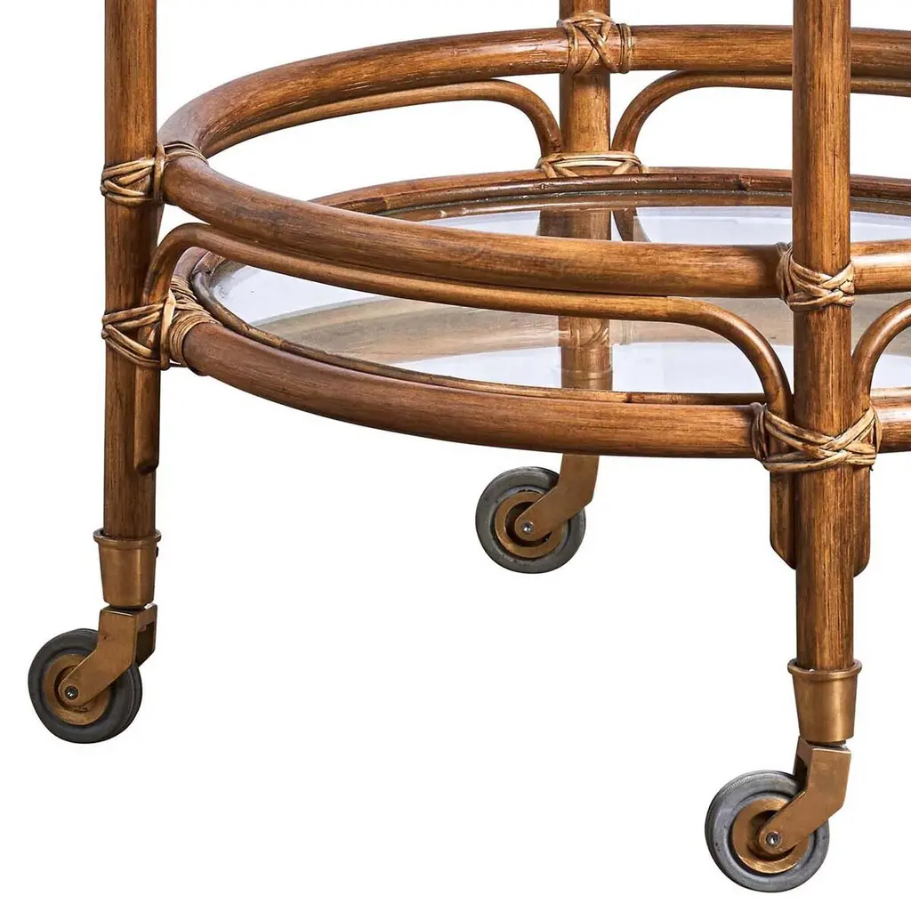 The Romeo Trolley by Sika Design speaks to those who appreciate effortless elegance and practicality. Bringing back the glamour of the 1950s dinner party, the natural rattan trolley showcases graceful organic curves and masterful craftsmanship. Topped with a handle and finished with small brass casters for easy mobility, the versatile design elevates the feel of any space. The Romeo makes a charming bar cart or tea service and adds a classic touch as a side table in the bedroom or living room.