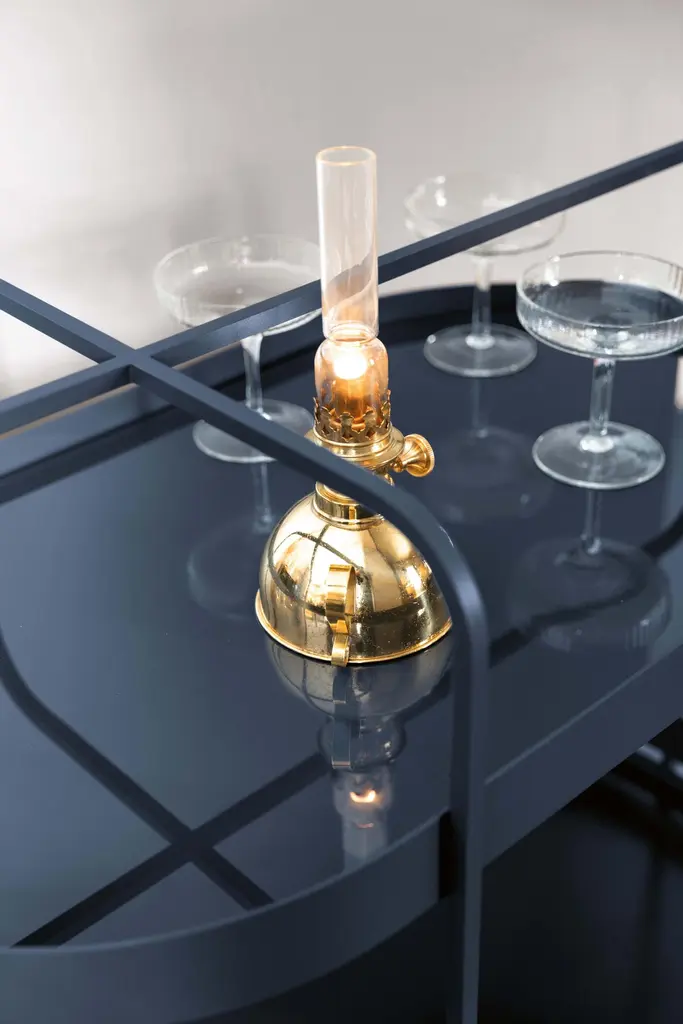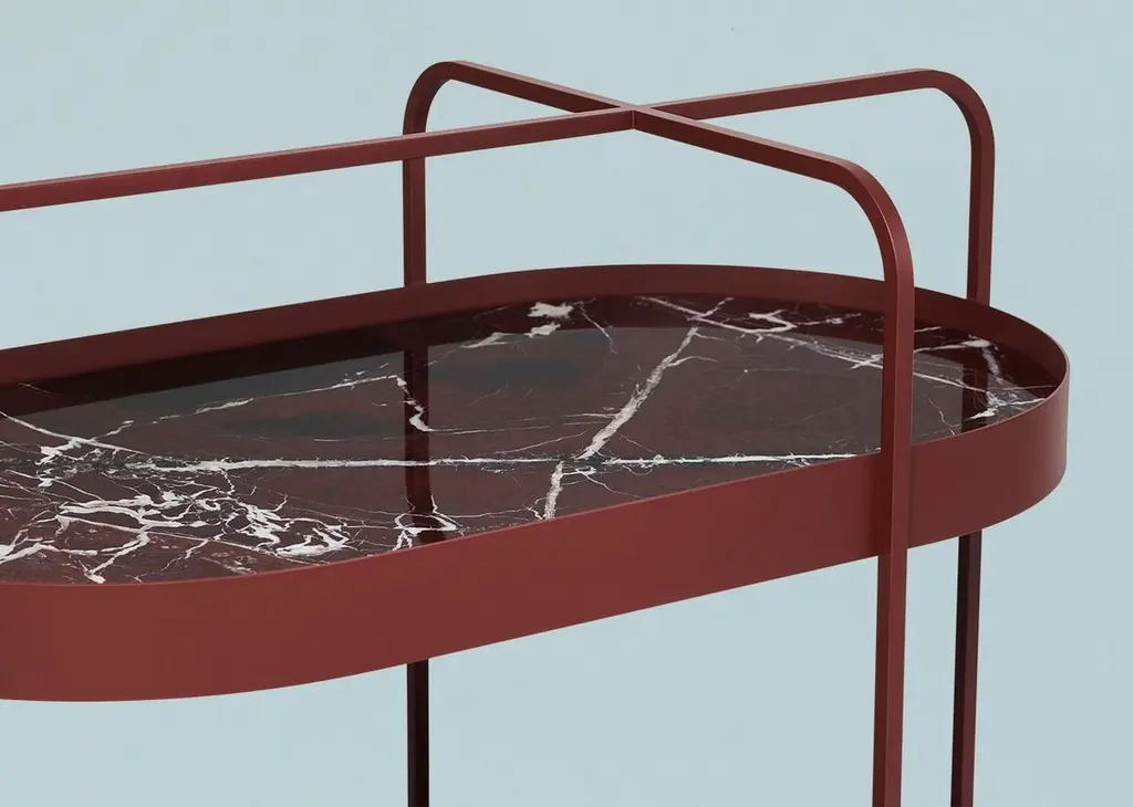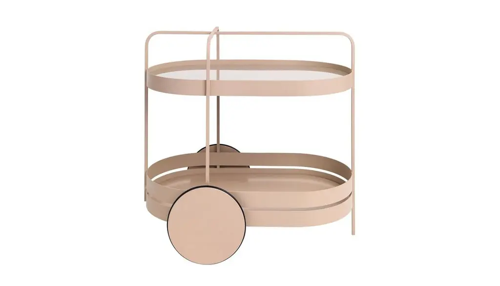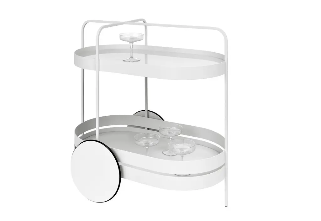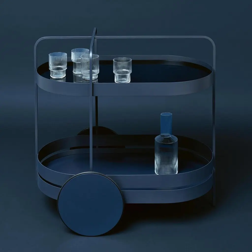 A future classic. The clear lines and stylish practicality of the GRACE serving trolley make for a winning combination. Its minimalist form is the perfect modern twist on a classic item. Use as a mobile bar or side table, or for storage in home offices to add a touch of style to the everyday. Inspired by 1950s architecture, the design of GRACE works well with any style of interior. Its sheer elegance makes it a statement piece. The frame is made of powder-coated metal in black, grey white, midnight blue or rosewood, and topped with a glass shelf back-painted in the colour of the trolley. A strong statement piece, totally contemporary and totally timeless.