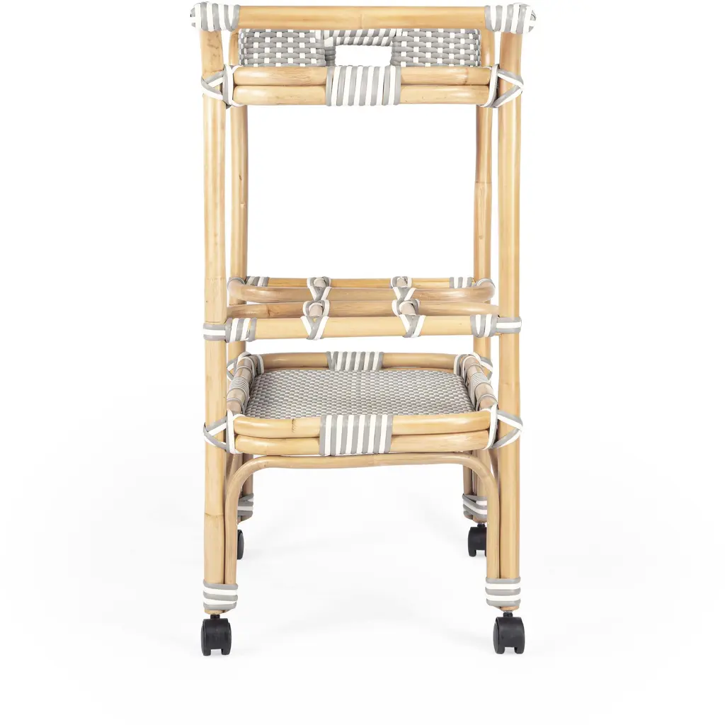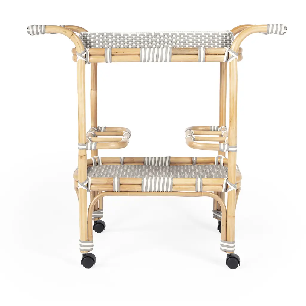 Butler Specialty Company Selena Grey & Rattan Bar Cart, Gray and White, Natural