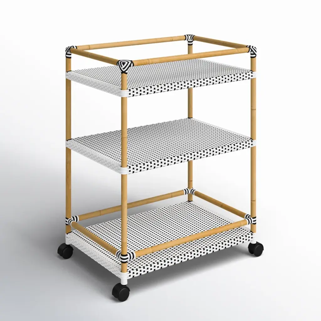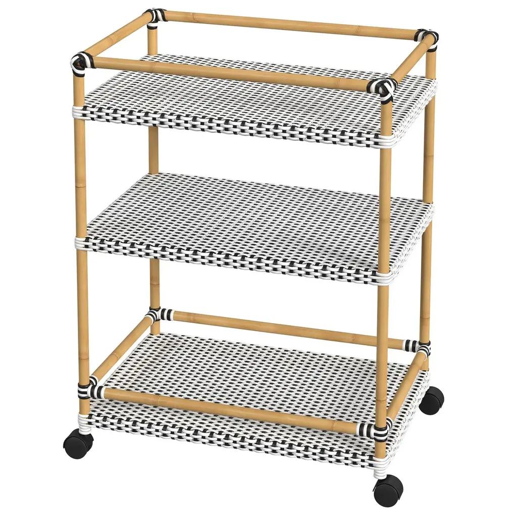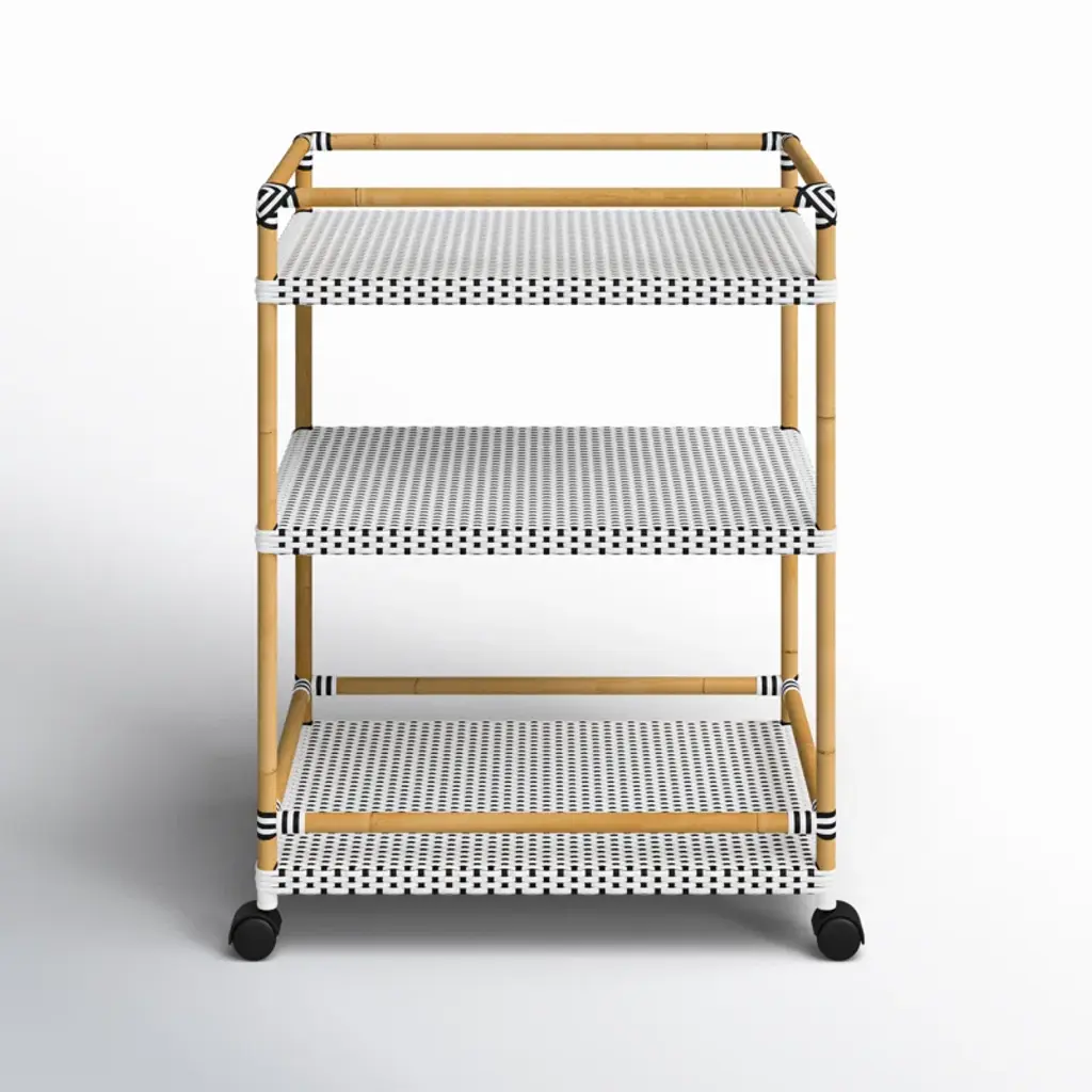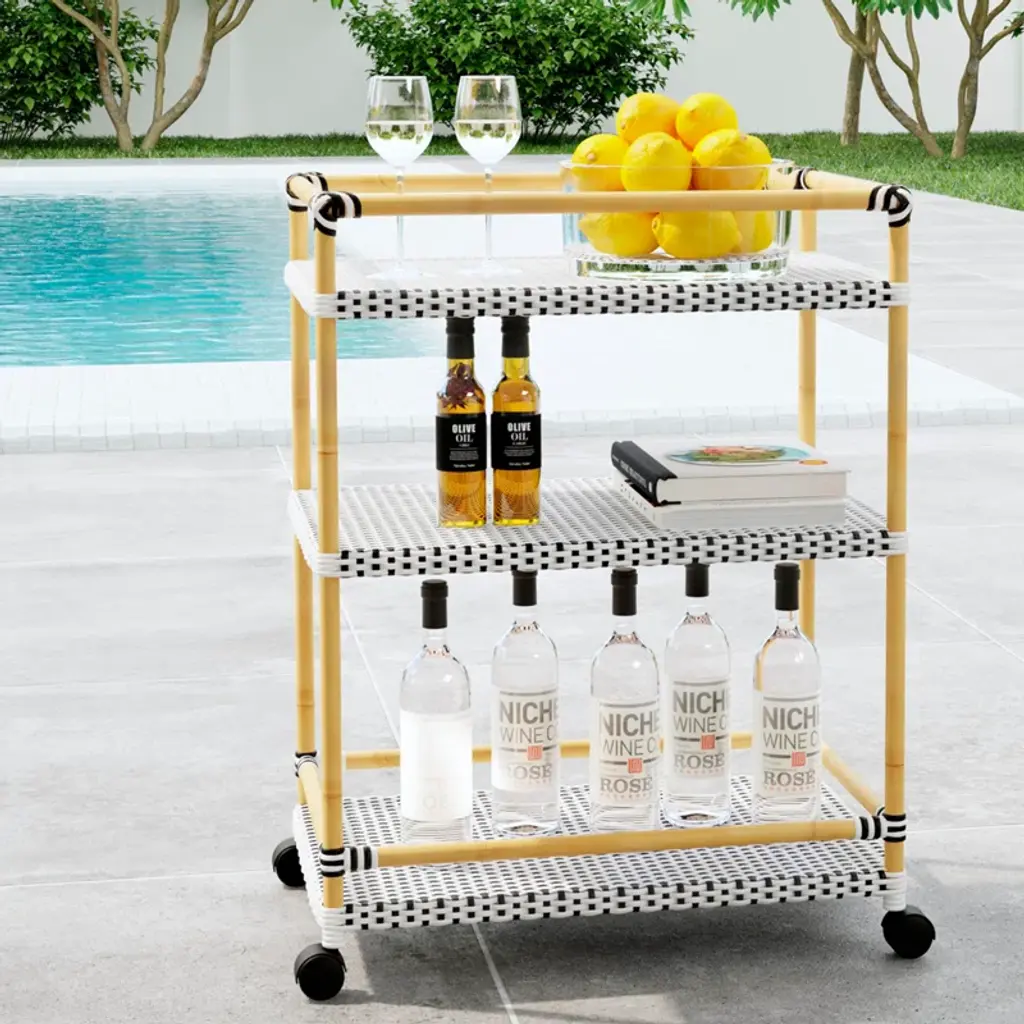 Tobias Outdoor 3- Tier Rattan And Metal Bar Cart