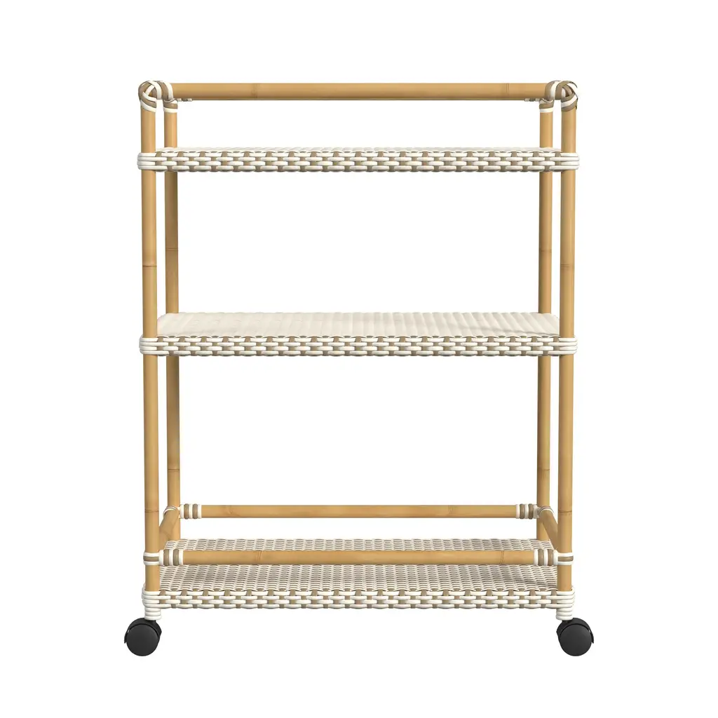 Tobias Outdoor Rattan & Metal 3-Tier Rattan Bar Cart, Beige & White