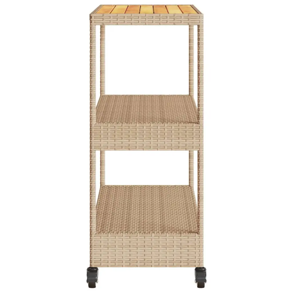 Vidaxl Bar Cart 3-Tier Beige Poly Rattan And Solid Wood Acacia