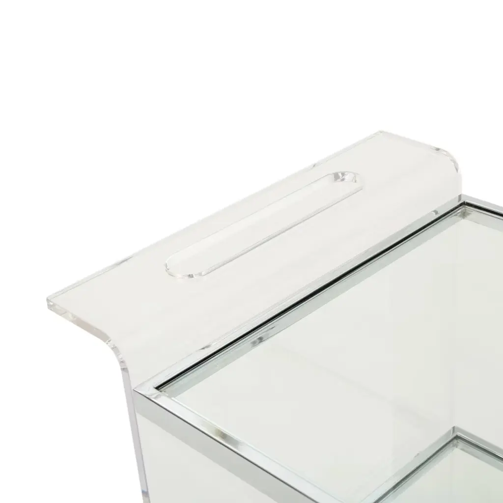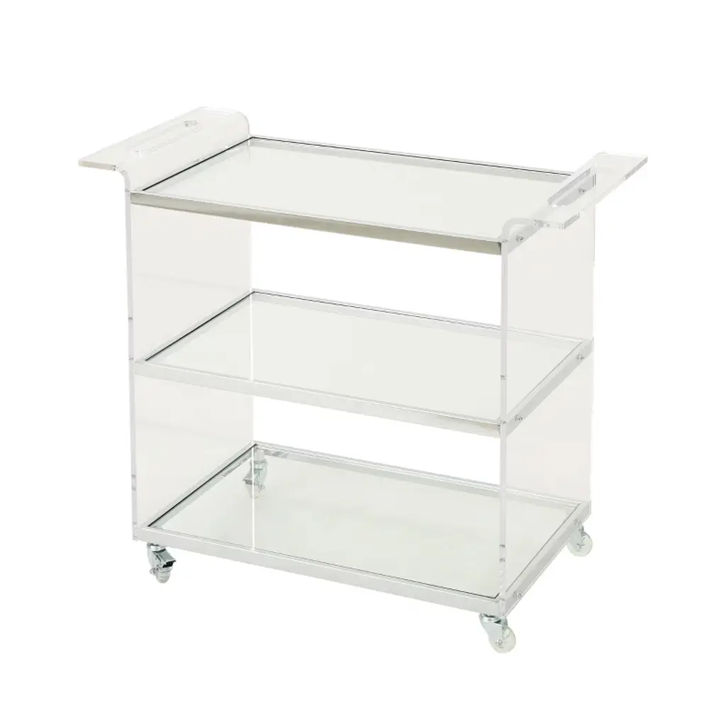 This Christopher Knight Home Yves Acrylic Bar Trolley is a wonderful addition to any home. You can use it to serve your guests dinner without having to balance everything, or you can serve tea or desert in style. The possibilities are only limited to your imagination. Featuring an acrylic frame with tempered glass shelves, this Christopher Knight Home Yves Acrylic Bar Trolley will be a fan favorite for all your events with its ease of getting around.