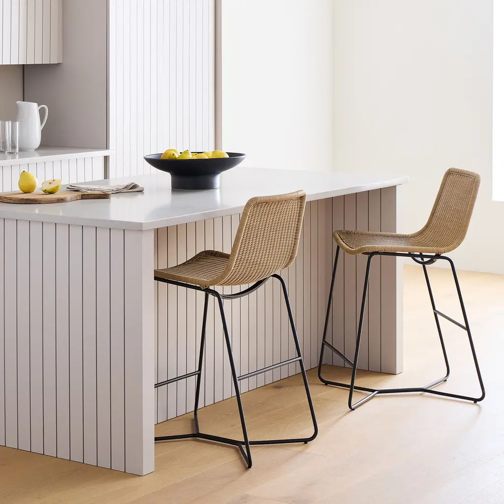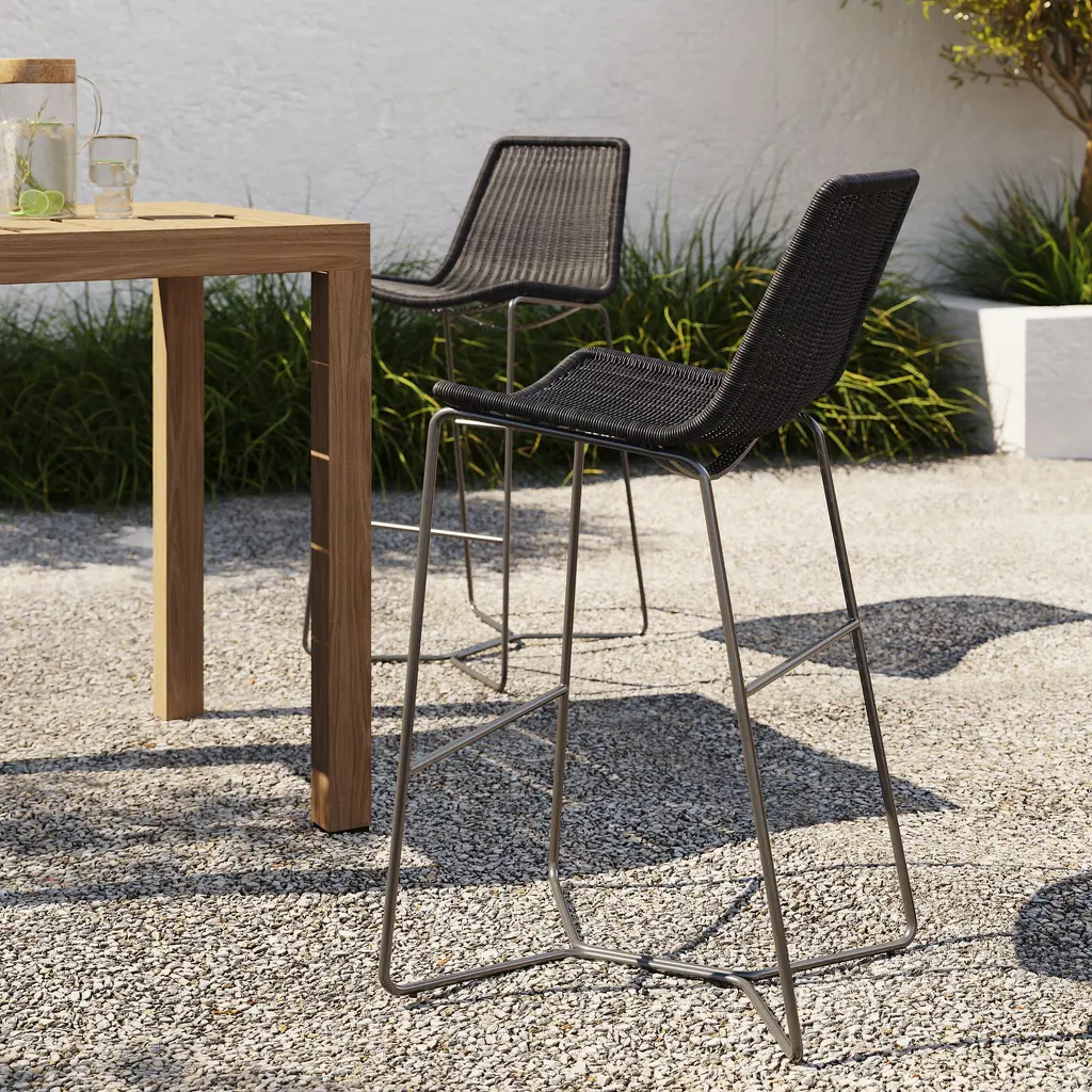The modern mix of wicker & powder-coated steel. Weather-resistant materials are outdoor-safe. Contract Grade, so you know it's built to last. Works equally well indoors as out.