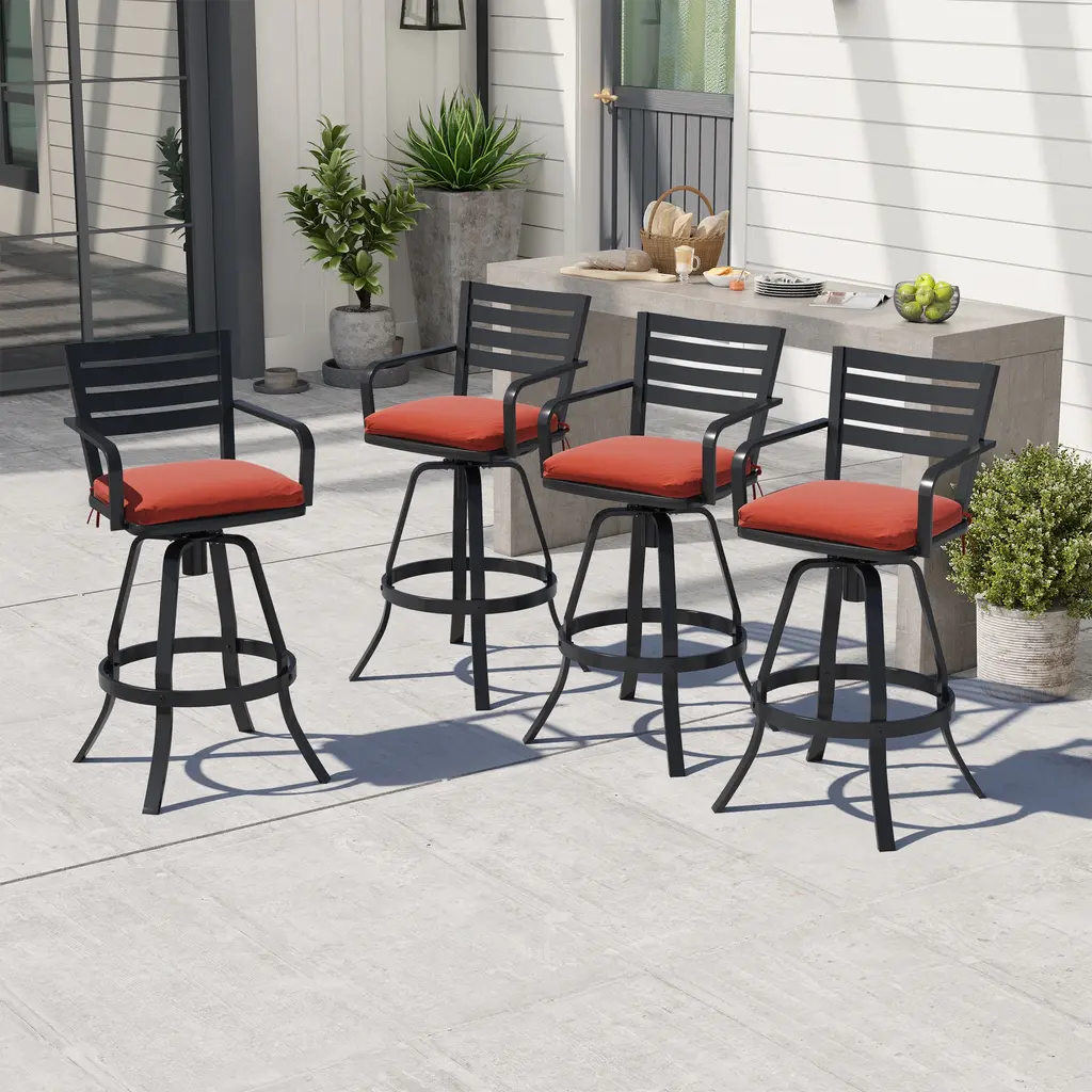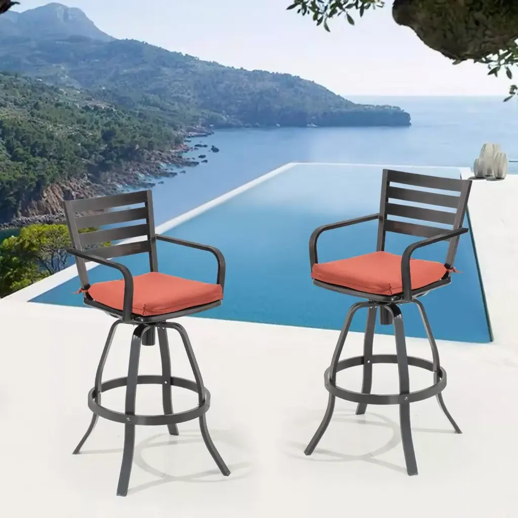 2Pk Outdoor Cast Aluminum Swivel Bar Stool With Cushion Red - Crestlive Products: Patio Dining & Bistro Chairs