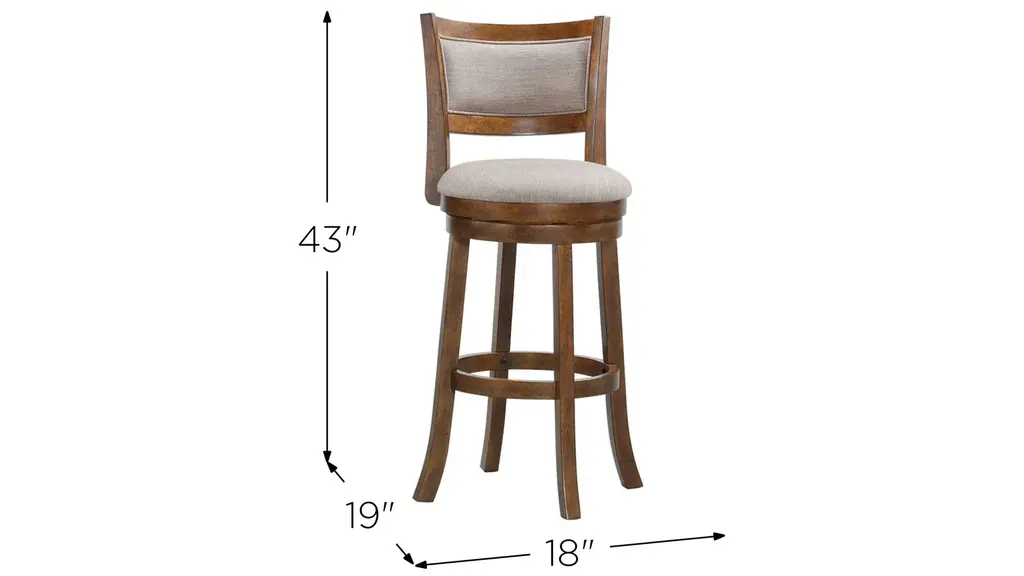 Check out the Baker Bar Stool for any room accommodation! These stools are available in brown, white or gray finish. They are also available in two sizes to fit any of your seating needs. They each have an upholstered seat with a ball bearing swivel seat. Each finish color has its own design flare for your decor.