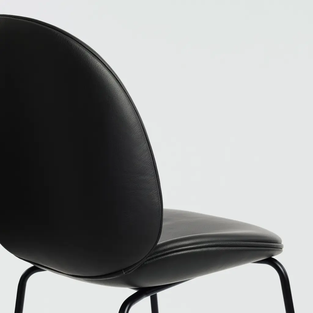 The Beetle Stool (2013) is built on a sturdy frame that cradles the sitter in comfort from seat to back while striking an interesting silhouette between traditional and surprising. It was designed by Danish architect Stine Gam and Italian architect Enrico Fratesi, who founded Copenhagen-based GamFratesi in 2006. Made in Denmark.