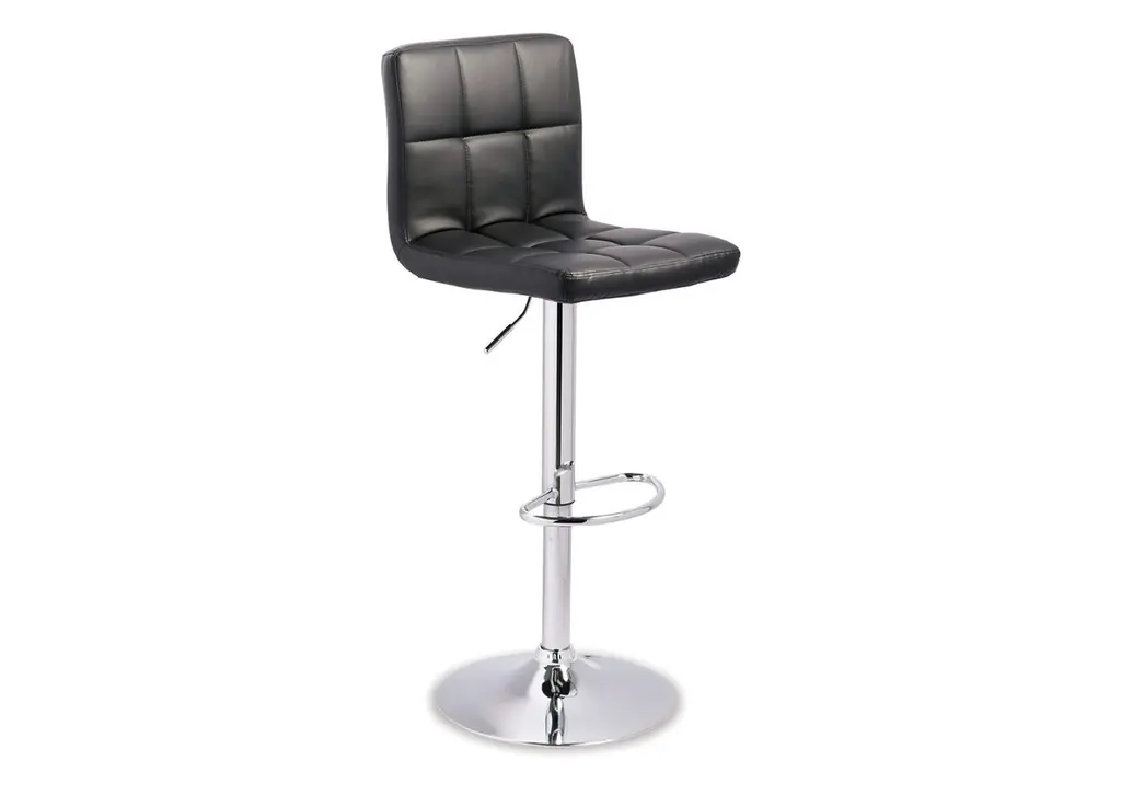 This upholstered swivel bar stool is ultra-contemporary style with a twist. Chrome-tone metal base is a sleek complement to the tailored cushioned seat with faux leather upholstery and squared tufting. Weight 17.000 lbs. (7.65kgs.)