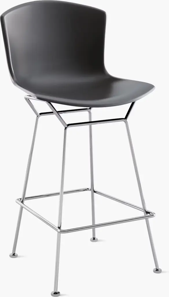 The Bertoia Molded Shell Stool (1960) merges the grace of Harry Bertoia's wire-form design from 1952 with a touch of color and natural flex. Choose a matching color for the molded nylon seat shell and welded steel rod frame or mix it up for a totally unique look. This is the authentic Bertoia Molded Shell Stool by Knoll. A sign of authenticity, the KnollStudio logo is stamped into its base. Made in Italy.