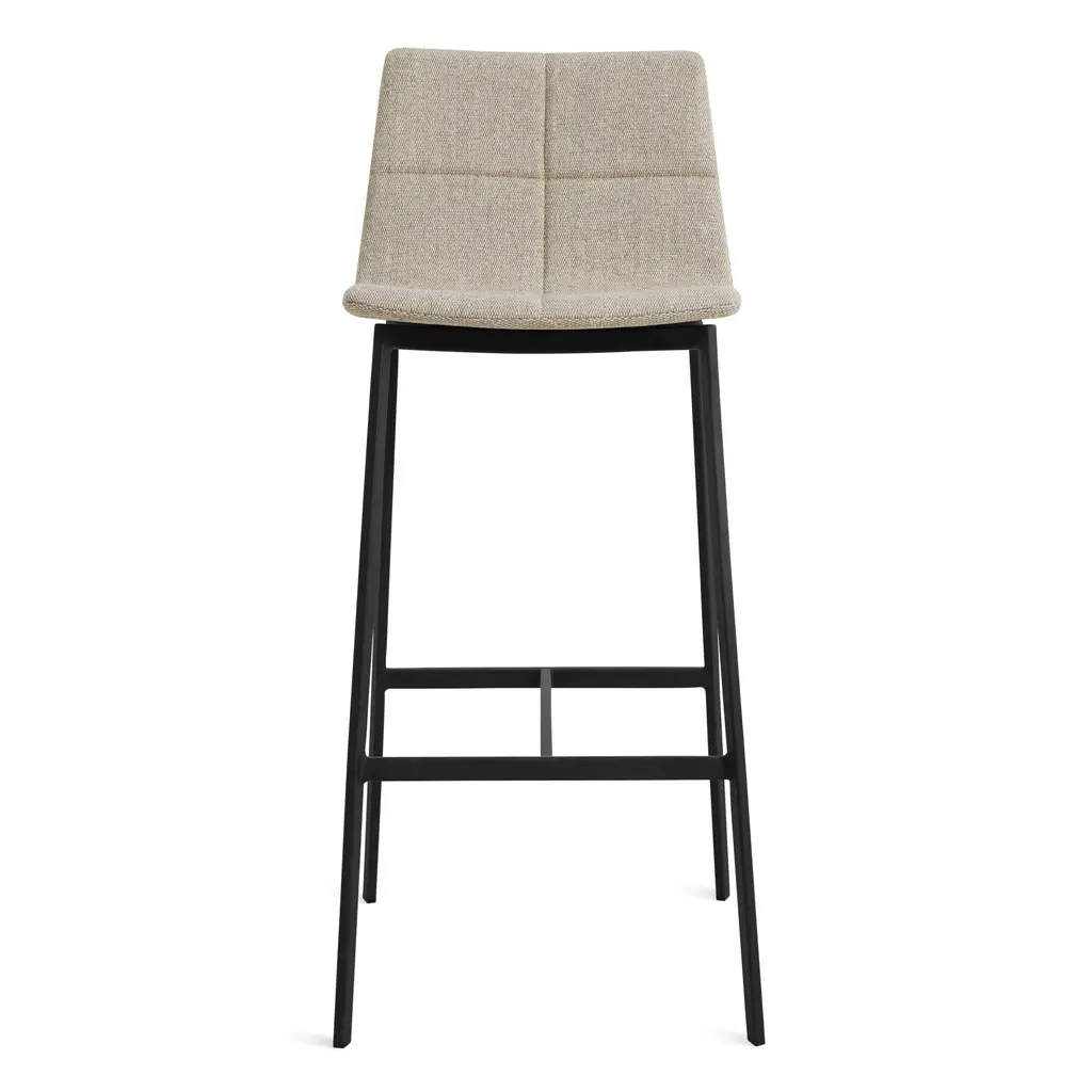 Rectangular steel legs bring a bit of edge and grid stitched upholstered seat and back lend texture and softness to this seating situation. Reliable in any setting, Between Us is a stool always prepared to be of service.