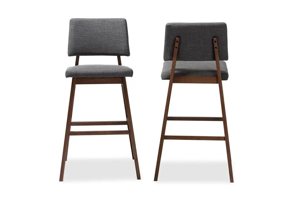 Cole Dark Grey Fabric Upholstered + Wood 30.3" Barstool Set Of 2 | Armless