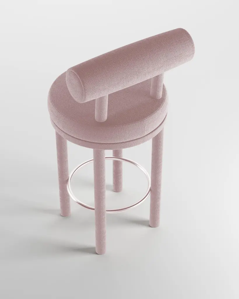 Collector Contemporary Modern Moca Bar In Bouclé Rose By Studio Rig