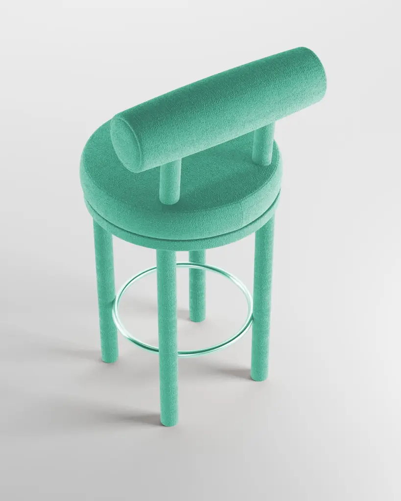 Collector Contemporary Modern Moca Bar In Bouclé Teal By Studio Rig