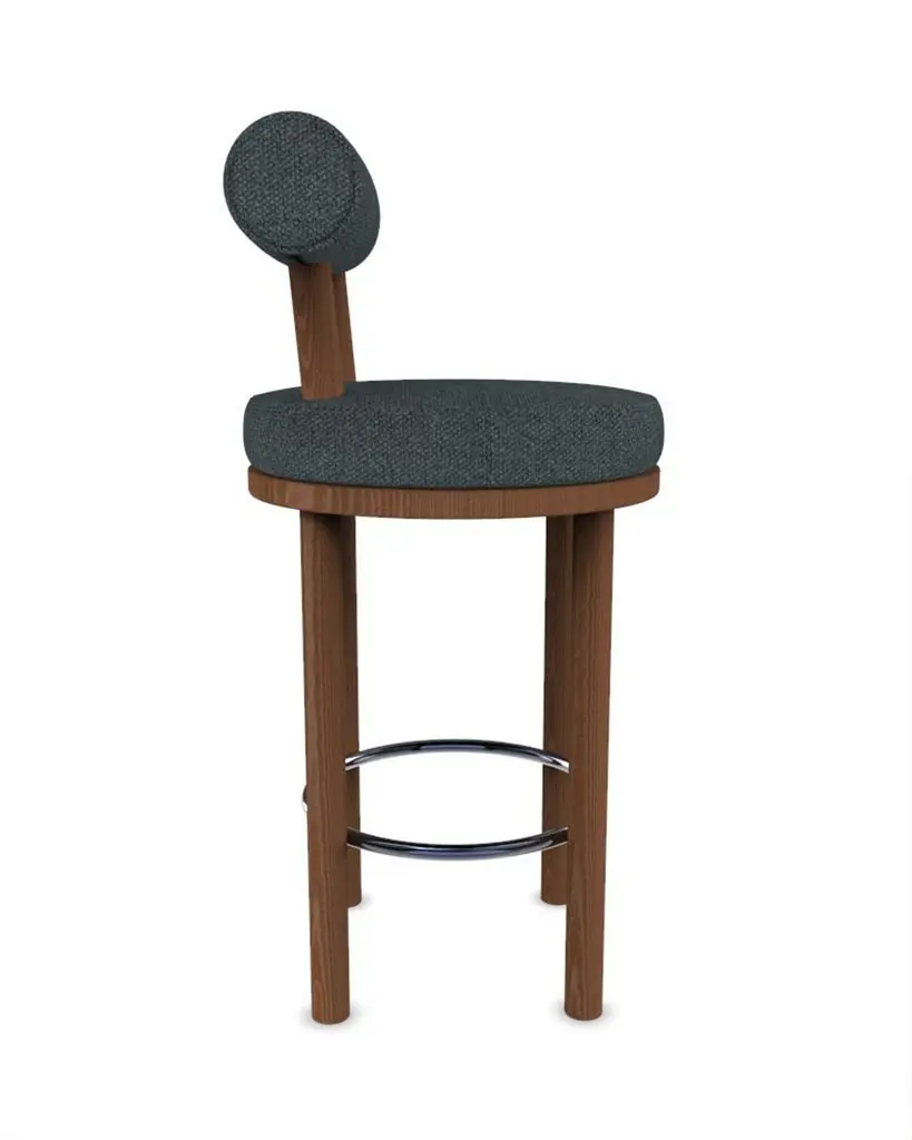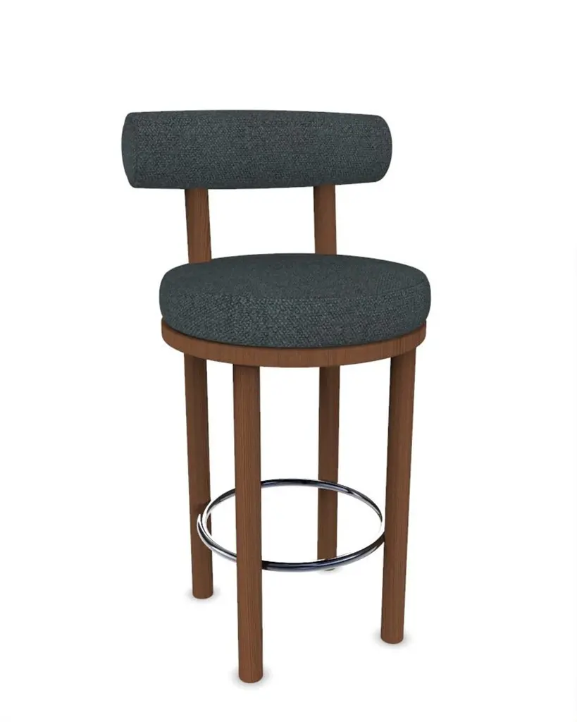 Contemporary Modern Moca Bar Chair in Safire 10 Fabric and Smoked Oak by Studio Rig for Collector StudioA chair that mixes both modern and classical design approaches.Designed to hug the body, durable and solid chair features a body structure produced in solid wood.DimensionsW 45 cm 17,7”D 50 cm 19,6”H 98 cm 38,5”SH 65 cm 25,5”orH 108 cm 42,5”SH 75 cm 29,5”Product featuresSolid oak wood structure. Uphostered in fabric.Product optionsAvailable in all collector leathers and fabrics.Available in client’s own material.About collectorThe Collector brand was born and Portugal and aims to be part of daily life by fusing furniture to home routines and lifestyles. The company designs its pieces with the intention to embrace diverse styles and to blend in inside any contemporary setting.A wide range of product typologies are designed to work in diverse layers of importance. The result is a clean-lined furnishing collection that can easily be customised to work specifically and according to each unique need, reflecting traditional methods of furniture manufacturing with accurate industrial production methods. Collector strives to achieve the best quality possible by selecting the best materials and by the constant development of production processes and manufacturing partnerships.