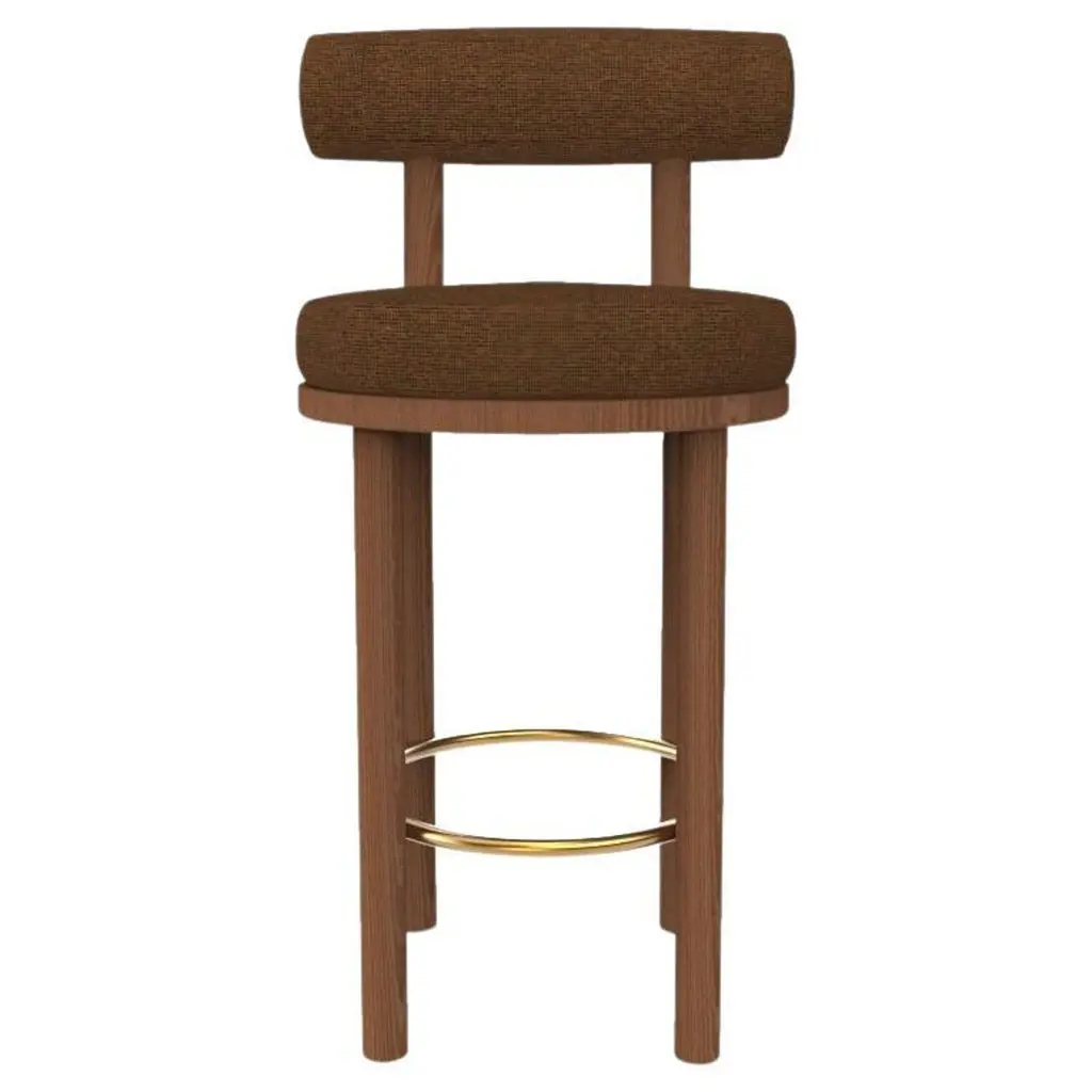 Contemporary Modern Moca Bar Chair in Safire 17 Fabric and Smoked Oak by Studio Rig for Collector StudioA chair that mixes both modern and classical design approaches.Designed to hug the body, durable and solid chair features a body structure produced in solid wood.DimensionsW 45 cm 17,7”D 50 cm 19,6”H 98 cm 38,5”SH 65 cm 25,5”orH 108 cm 42,5”SH 75 cm 29,5”Product featuresSolid oak wood structure. Uphostered in fabric.Product optionsAvailable in all collector leathers and fabrics.Available in client’s own material.About collectorThe Collector brand was born and Portugal and aims to be part of daily life by fusing furniture to home routines and lifestyles. The company designs its pieces with the intention to embrace diverse styles and to blend in inside any contemporary setting.A wide range of product typologies are designed to work in diverse layers of importance. The result is a clean-lined furnishing collection that can easily be customised to work specifically and according to each unique need, reflecting traditional methods of furniture manufacturing with accurate industrial production methods. Collector strives to achieve the best quality possible by selecting the best materials and by the constant development of production processes and manufacturing partnerships.