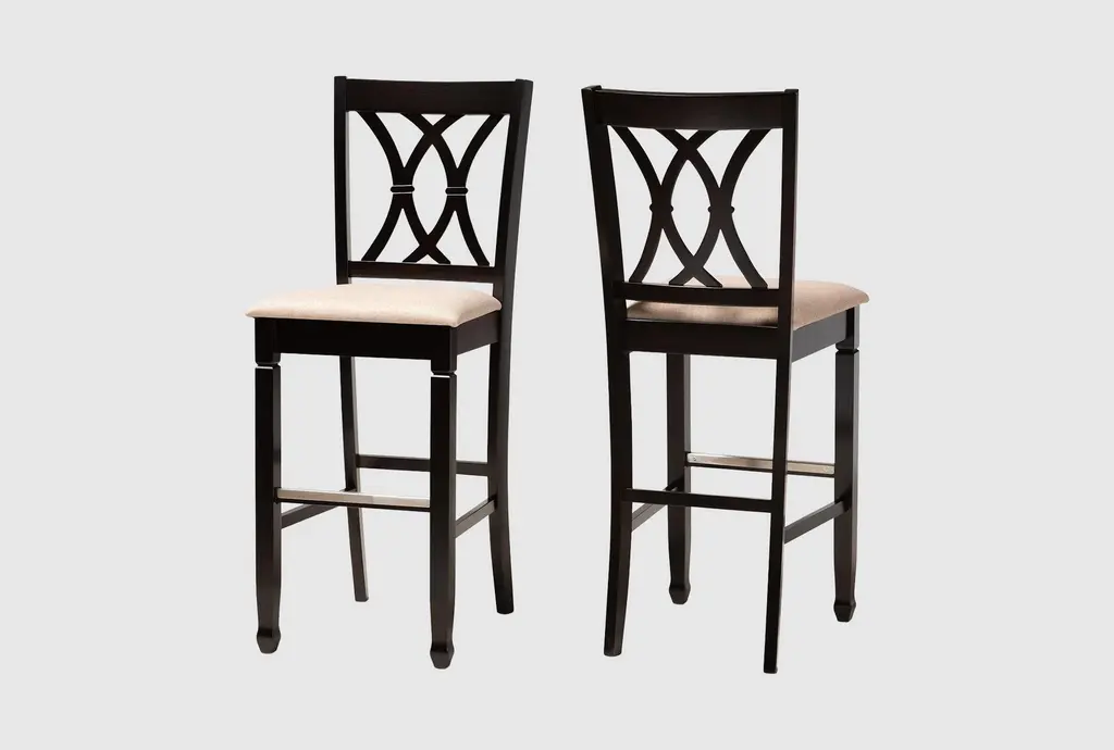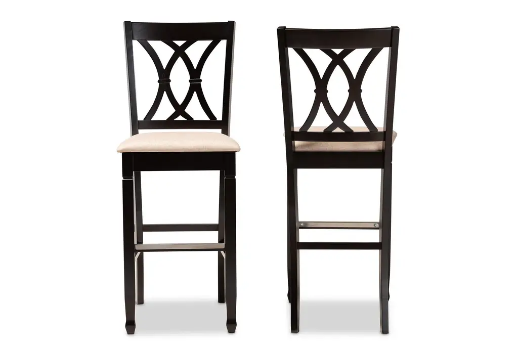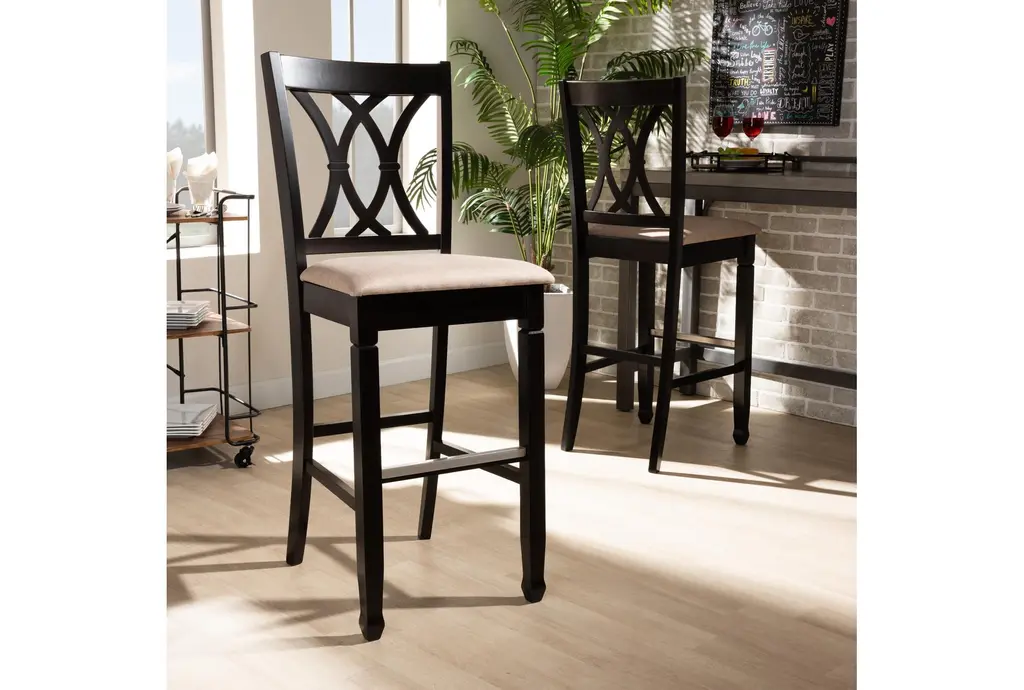 Enhance your kitchen or dining area with the Electra Sand Fabric Upholstered and Espresso Brown Finished Wood Bar Stool Set of 2. These modern bar stools feature a sophisticated design with a neutral sand-colored fabric and a rich espresso brown finish, making them a versatile addition to any decor. Constructed from high-quality oak wood and metal, these stools are both durable and stylish, providing comfortable seating with their foam-padded cushions.