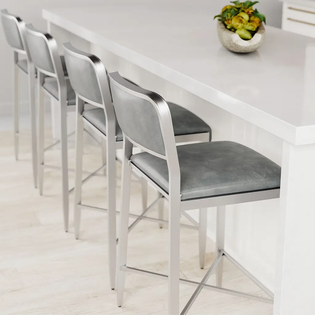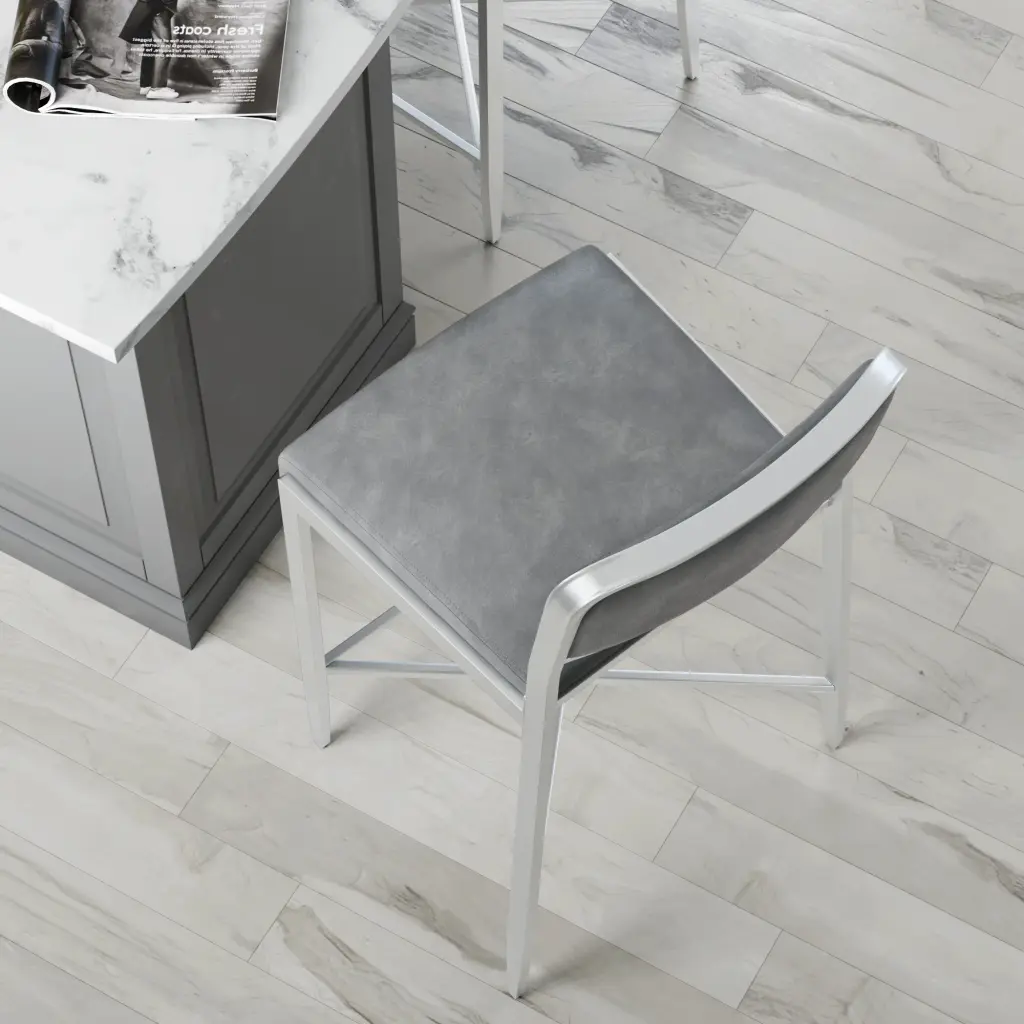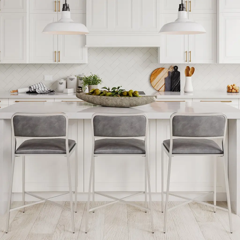 No, you’re not having double vision—the Kira bar stool really does come in a set of 2! Kira features sturdy tapered legs, a perfectly-placed footrest, and an angled 180 degree back support for when you’re patiently waiting for the dinner timer to go off. Upgrade your dining space with Kira’s powder-coated steel frame and PU leather seat. Have no fear, Kira’s soft gray seat is also scratch and stain resistant. It’s a modern, industrial statement piece, yet comfortable enough that you’ll want to hang out in the kitchen long after the wine runs out!