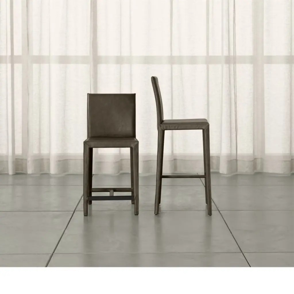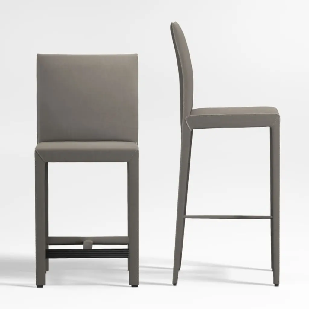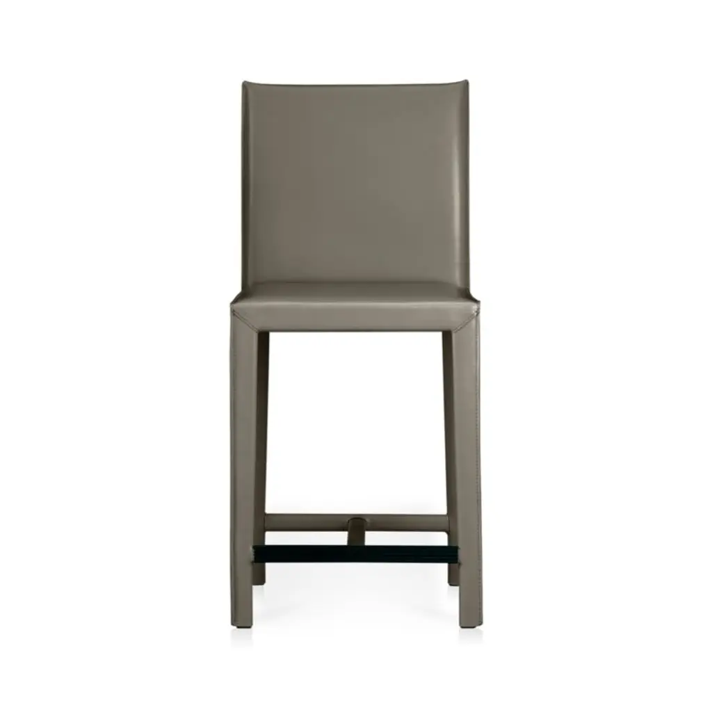 Folio Stone Grey Top-Grain Leather Bar Stool