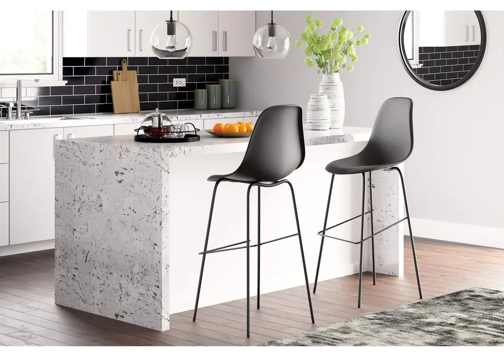 Designed with form and function in mind, the contemporary Forestead bar stool sports a slender-yet-sturdy metal frame and a fully contoured bucket seat. With its cool bar height dimensions and classically clean design, this stool transforms a kitchen island or breakfast bar into one stylish destination. Weight 16.500 lbs. (7.43kgs.)