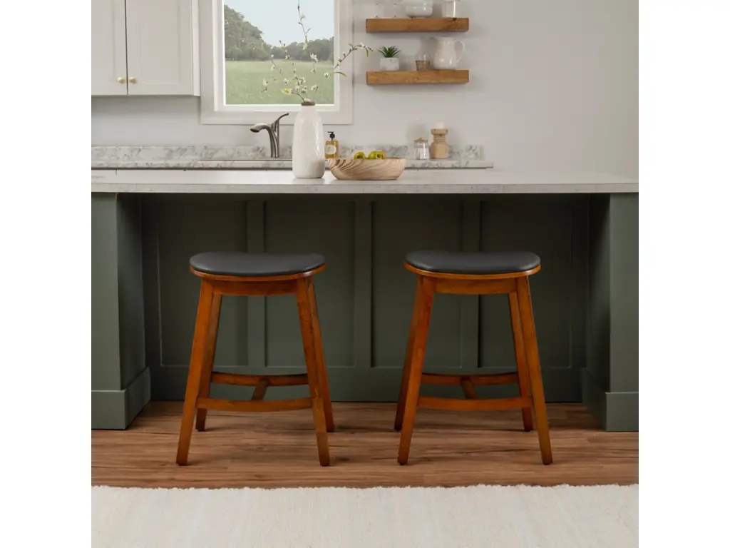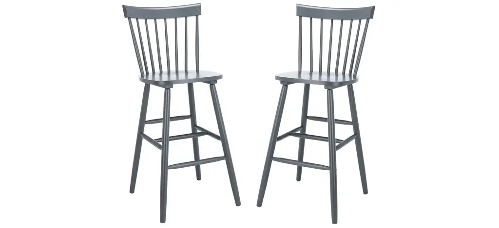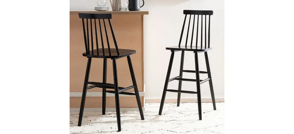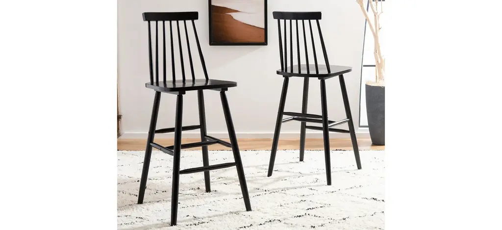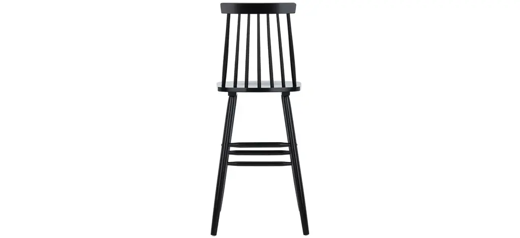 Raise a glass at the home bar while resting comfortably atop the dcor smart, clean line style of the Giles Bar Stool. With soft curves and an open air spindle back crafted of hardwood in a deep black finish, it blends seamlessly with any dcor.
