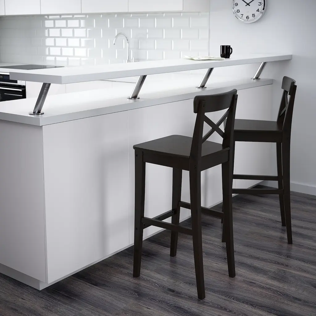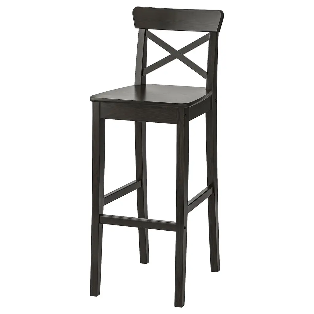 INGOLF Bar stool with backrest - brown-black 29 1/8 ". Footrest for extra sitting comfort. Solid wood is a durable natural material. Suitable for bar table heights 39-42" Recommended for indoor use only.