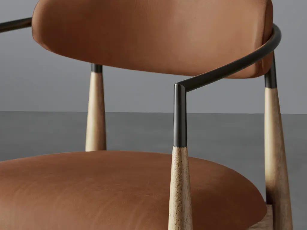 Handcrafted by artisans in Indonesia, our Jagger Dining Seating Collection delivers a sleek modern design paired with unfailing comfort. Hand-stained frames crafted from solid mahogany wood are complemented by warm metal accents, creating an elevated aesthetic perfect for any gathering space.