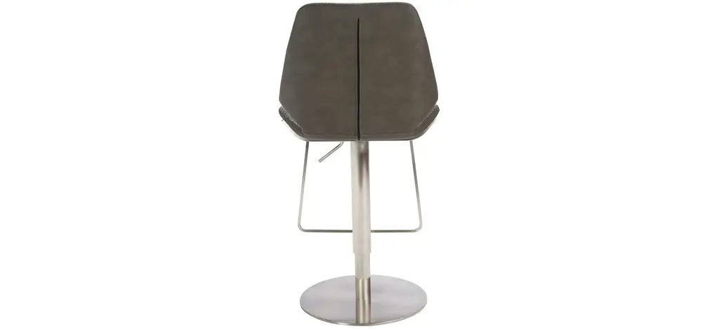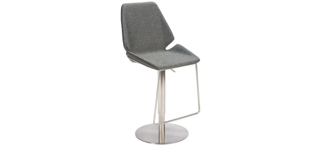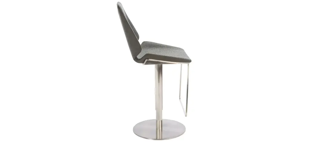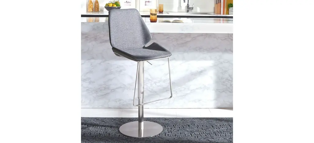 Stark minimalism gets a cozy contemporary twist in this Kara Gas Lift Barstool. Featuring a smooth vegan leather back and soft fabric front for rich textural intrigue, Kara's artistically designed silhouette pairs perfectly with its sleek stainless steel pedestal base.