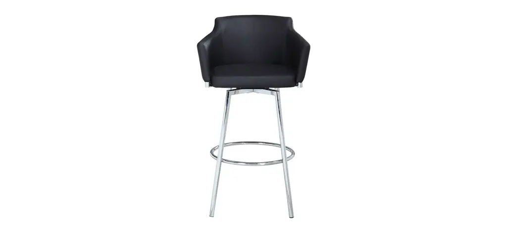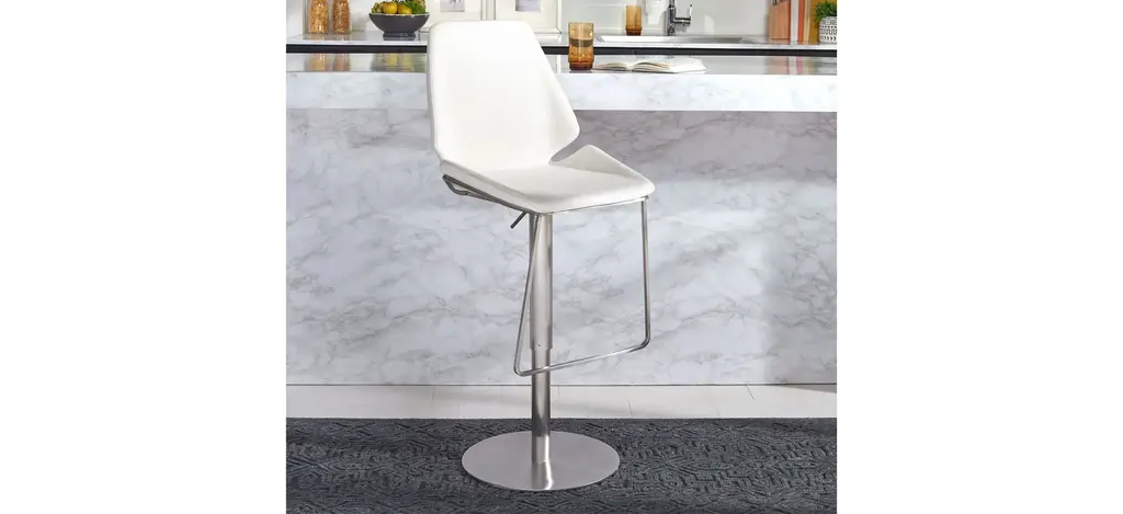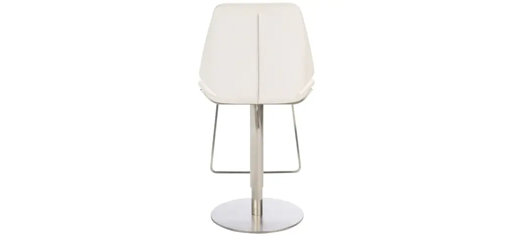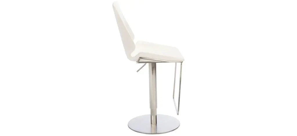 Stark minimalism gets a cozy contemporary twist in this Kara Gas Lift Barstool. Featuring a smooth vegan leather back and soft fabric front for rich textural intrigue, Kara's artistically designed silhouette pairs perfectly with its sleek stainless steel pedestal base.