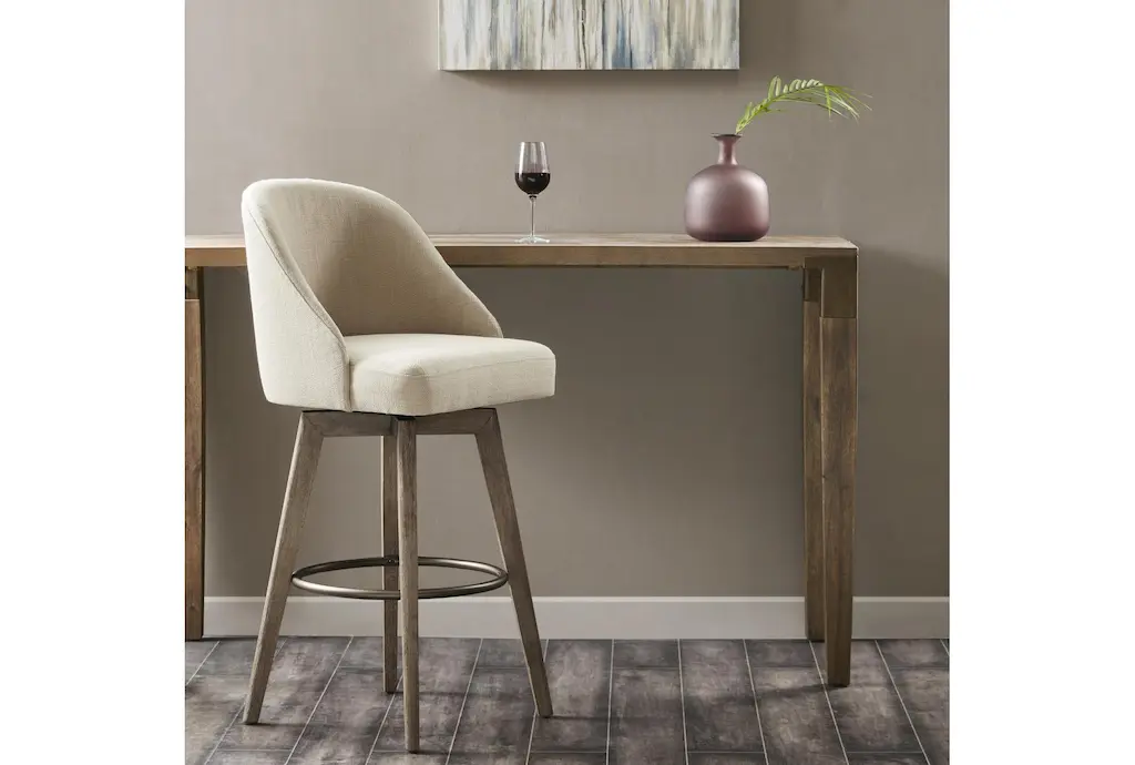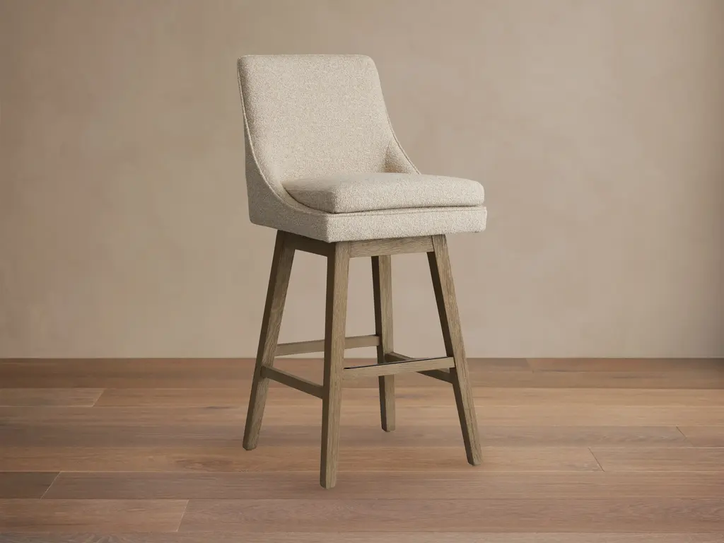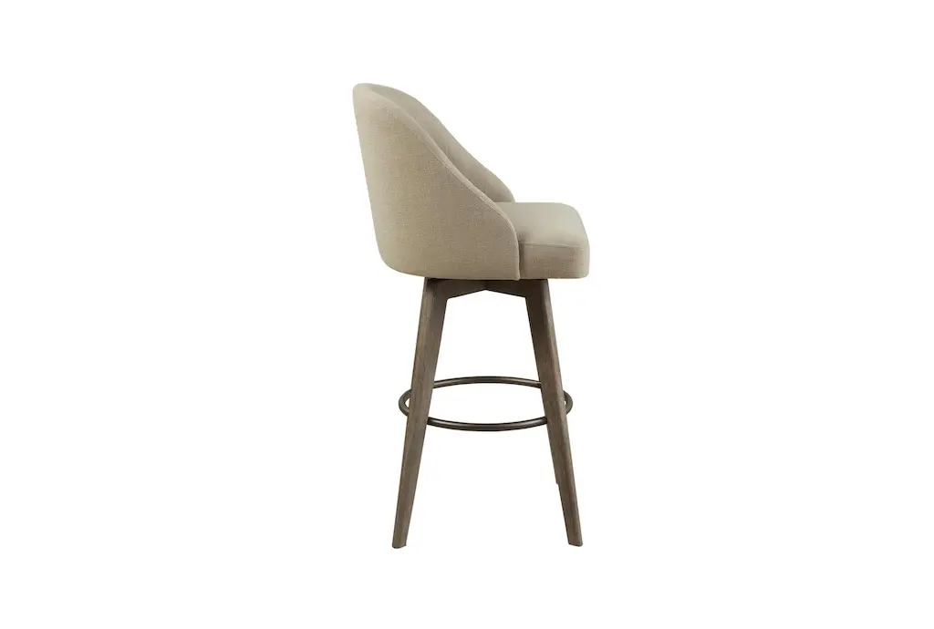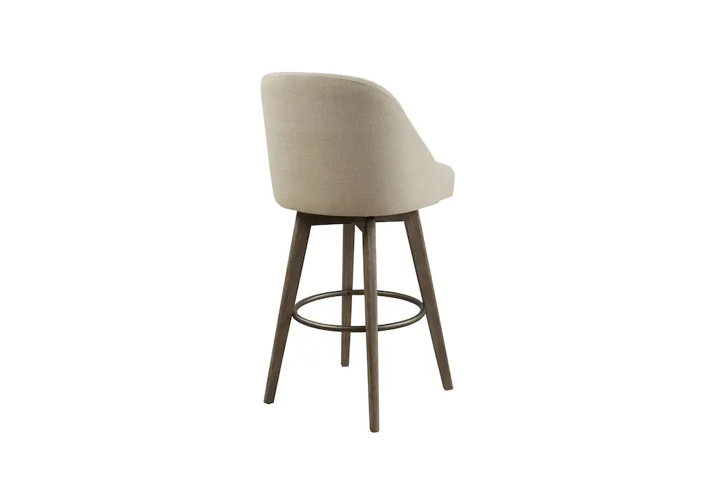 The Marshall Sand Wood 30" Barstool with Back and Swivel Seat is perfect for your dining room or kitchen. With a comfortable upholstered seat and back, this stool offers both style and function. The armless design and swivel feature provide ease of movement, making it a versatile addition to your space.