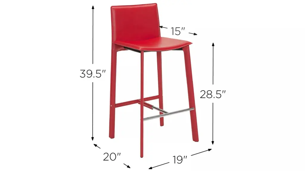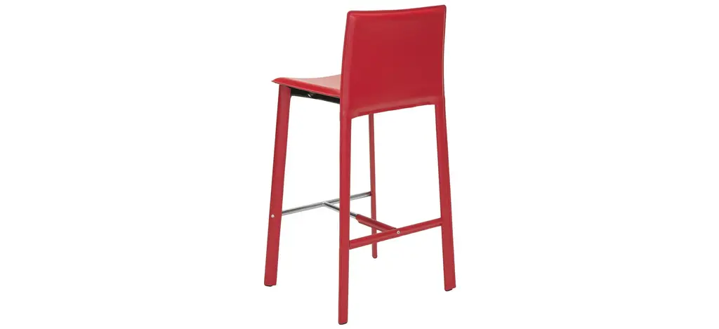 Equal parts good looks and practicality, the 30 Michelle bar stool complements kitchens and family rooms designed for comfort and chic contemporary style. With slightly flared legs, stainless steel foot rails and an iron frame completely upholstered in red bonded leather, Michelle will deliver years of active family service.