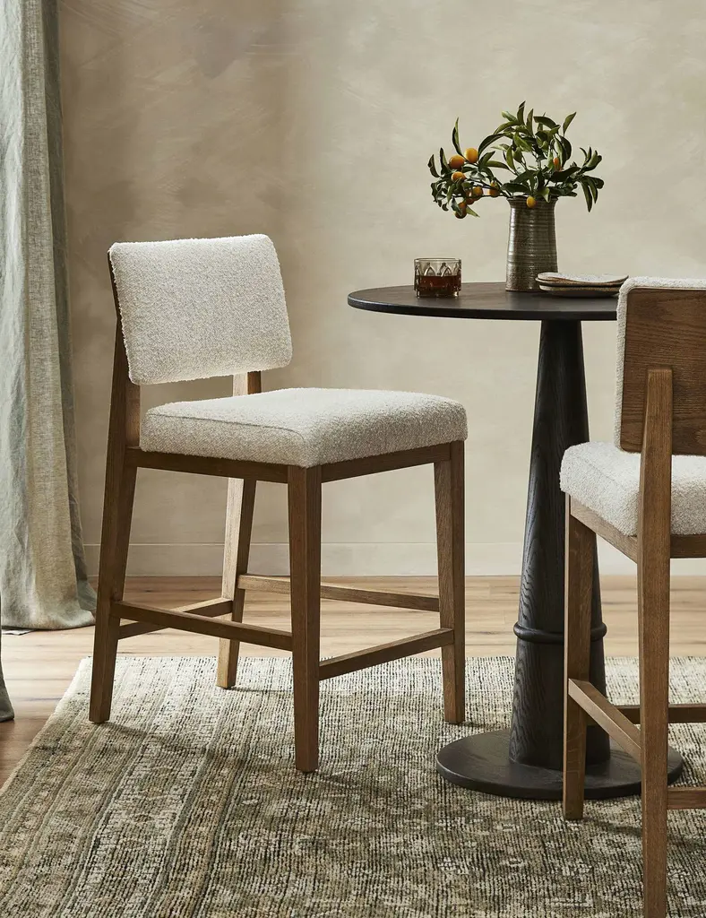Streamlined, understated, modernOliana is a versatile stool for transitional design. The clean wood frame and upholstered seat offer a pared-back look set for chic comfort in an everyday space. Available as a bar or counter stool, the neutral tones fold into kitchens and dining spaces with effortless elegance.