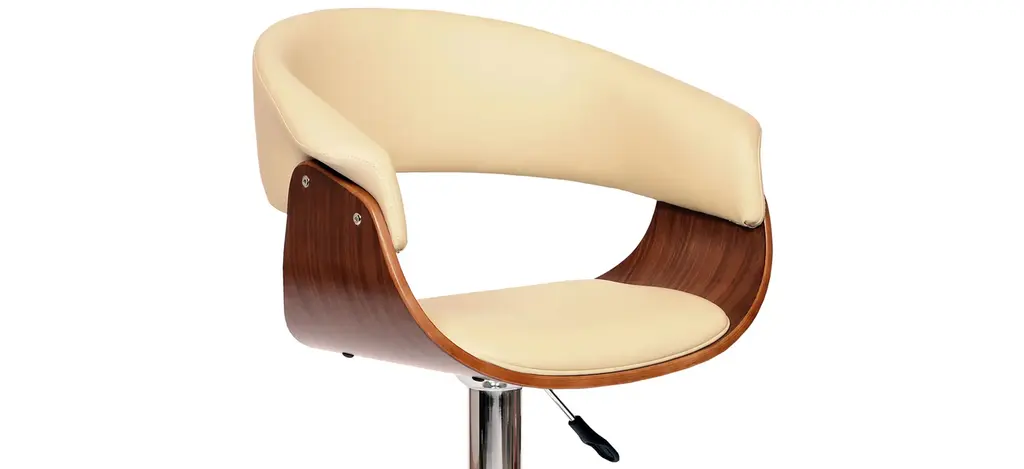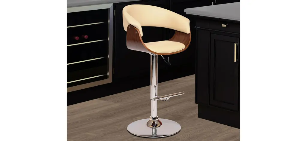 Take a seat in the swanky Paris adjustable-height swivel bar stool, featuring a walnut back and plush leatherette seating.