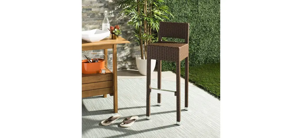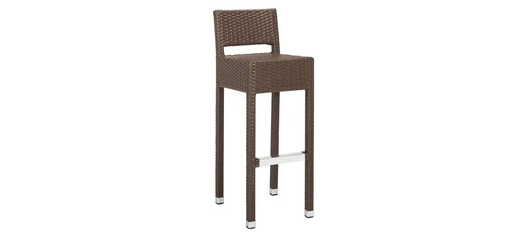The height of fashion, the Renzo indoor/outdoor contemporary bar stool makes a chic statement in any interior. Ideal for sipping cocktails or an espresso, its timeless brown wicker construction with silver metal accents makes it an investment.