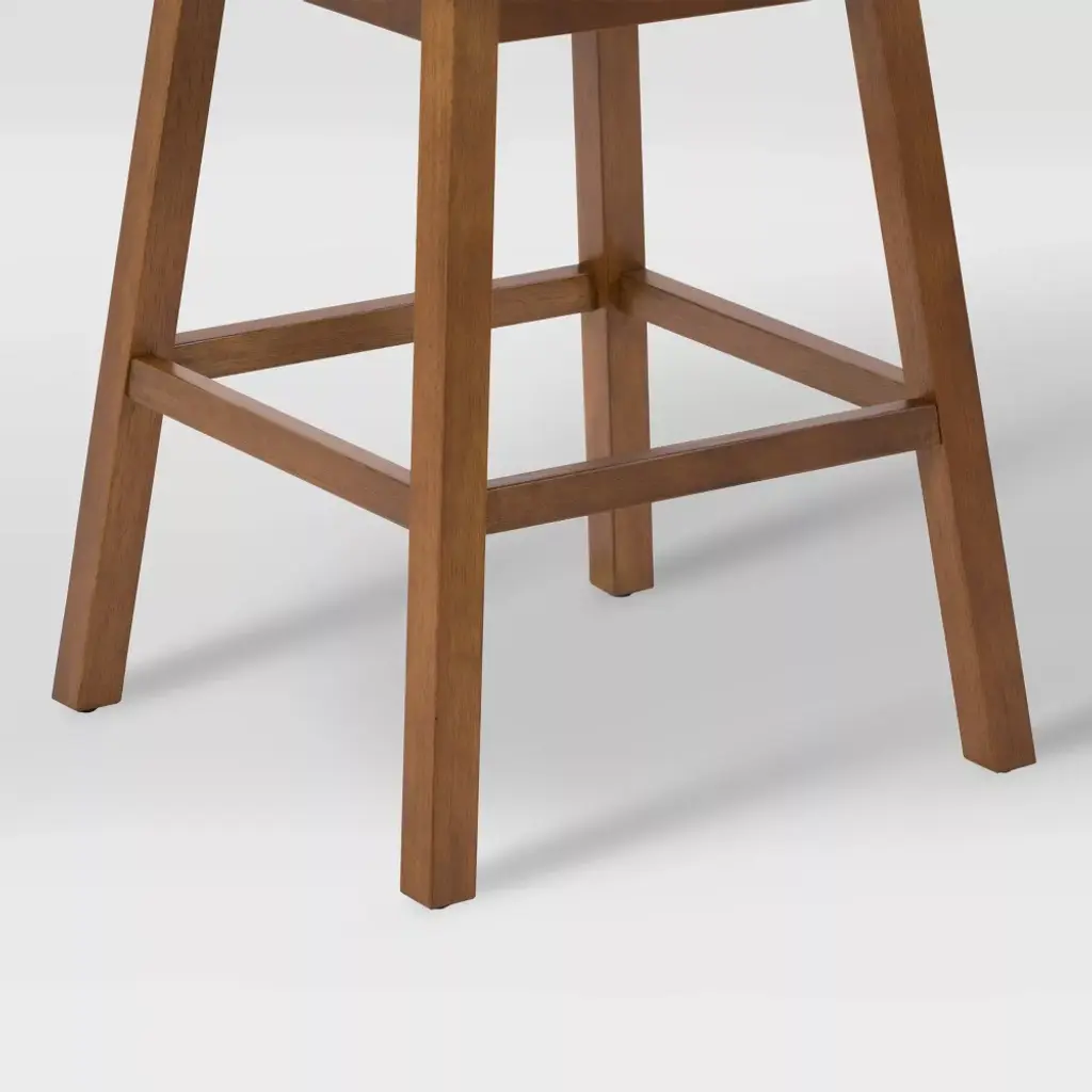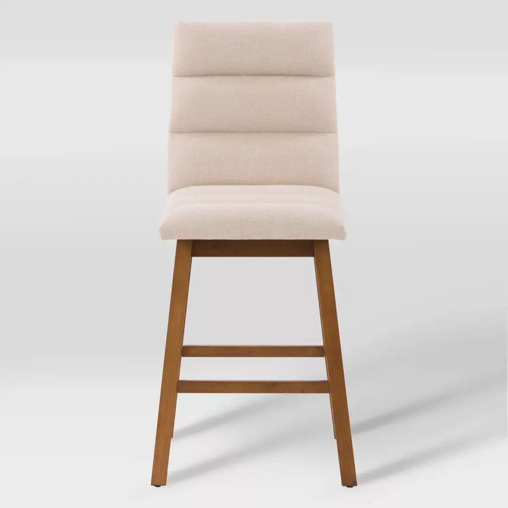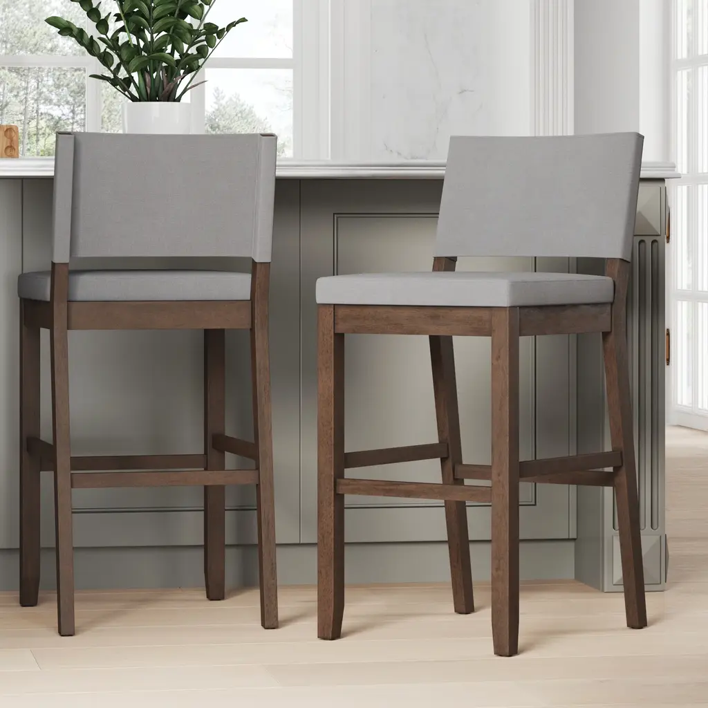 Pull up a seat to your kitchen island and enjoy your meal in comfort and style. These counter height bar stools feature a channel-tufted high back and an armless design allows for multiple seating options. The foam-padded upholstered seat offers comfort and support. Finished with dark brown rubberwood legs this bar stool is durable and stylish. This clean and classic design is a perfect addition to any kitchen.