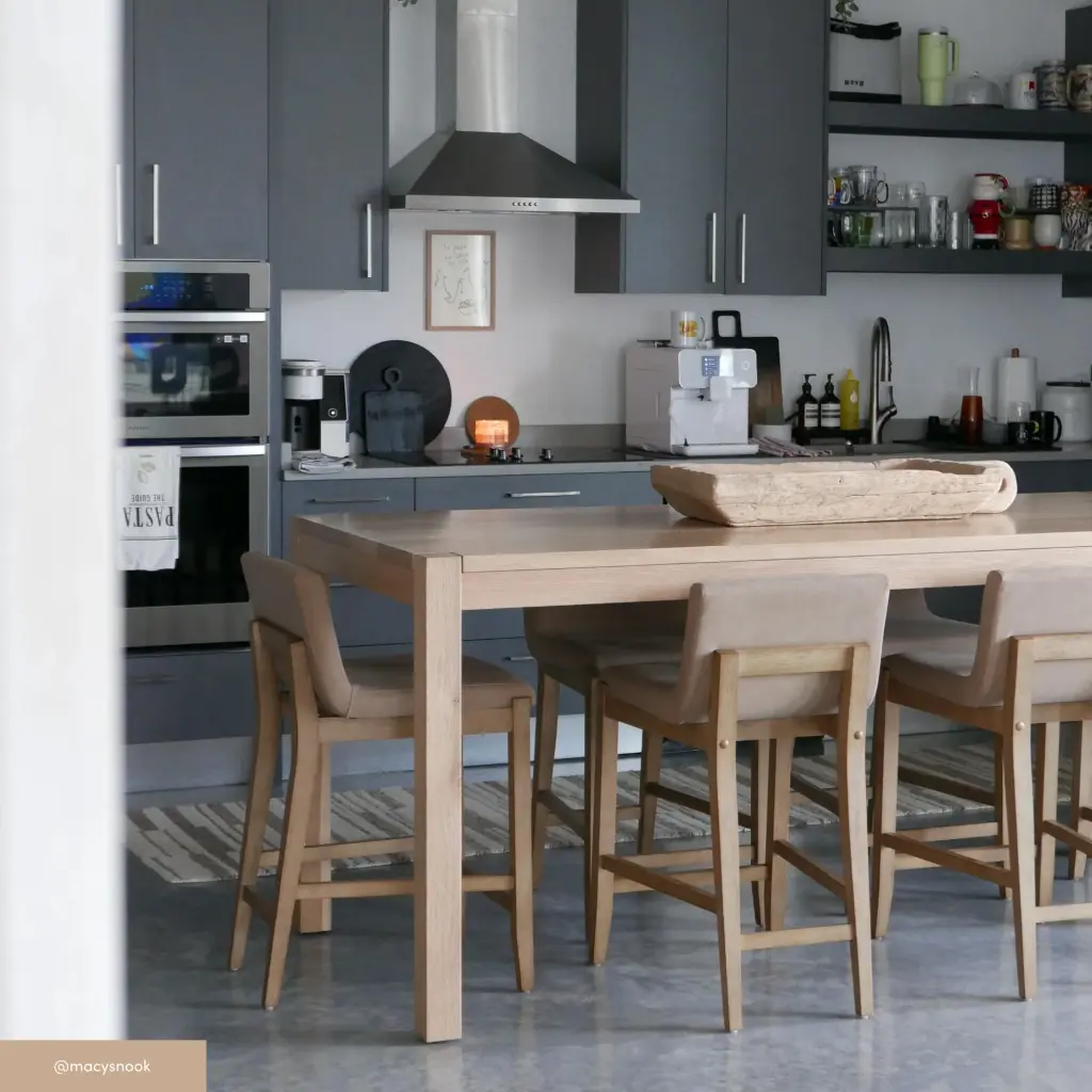 Kick your feet up in style with our set of 4 Gracie bar stools. With an exposed wood back and sleek modern design, Gracie is sure to stun. These bar stools combine a wire brushed light brown wood finish and a light brown faux leather cushion for ultimate comfort and style. They boast a modern silhouette with tapered legs and a curved seat, making these bar stools the star of any kitchen. So grab your drink of choice and sit back in full comfort on these made-to-last bar stools.