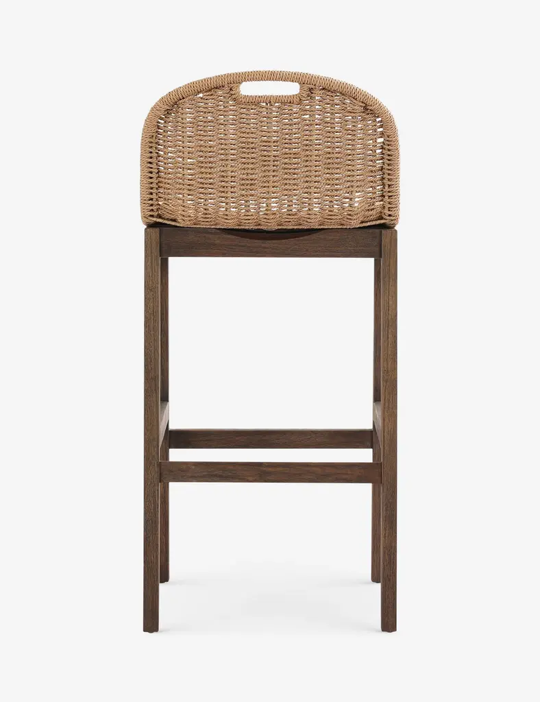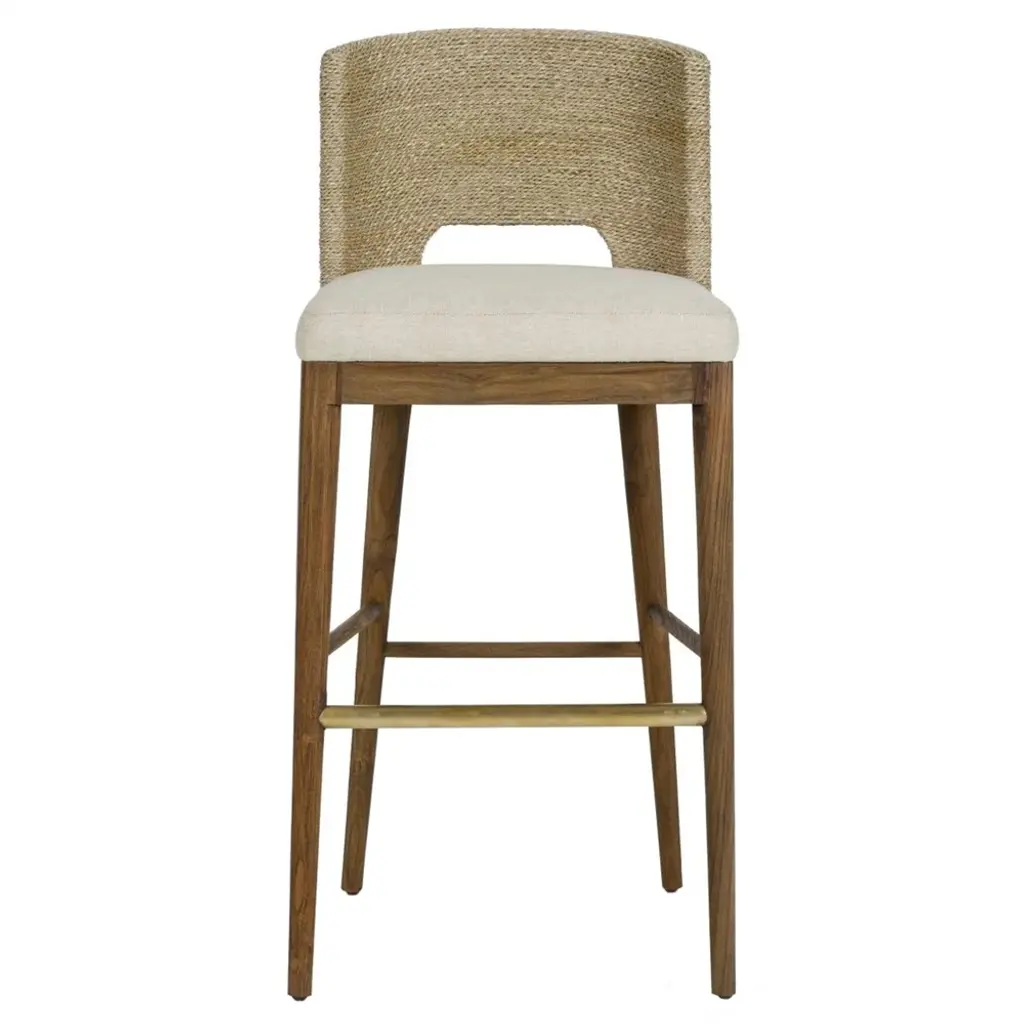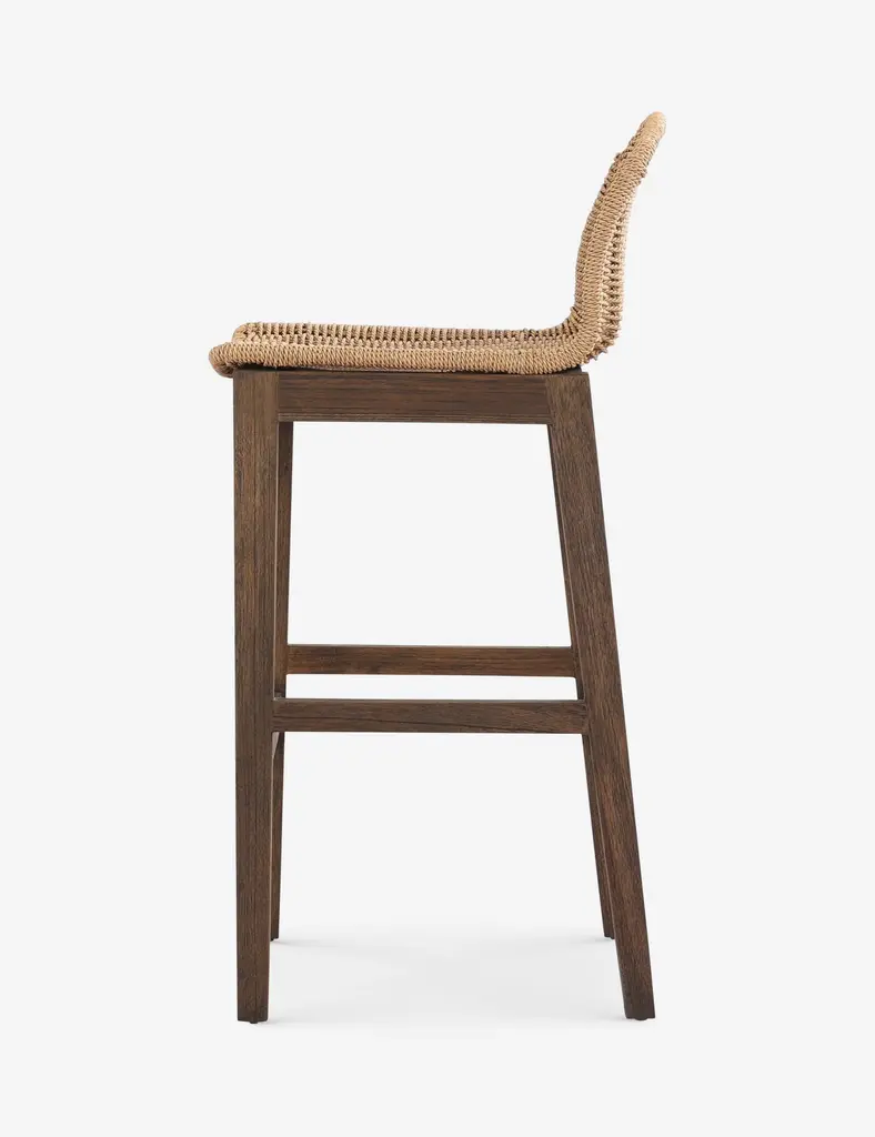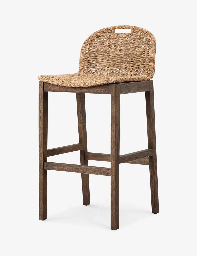 Four Hands brings their exceptional craftsmanship to a timeless collection rooted in Amber Lewis' perennial California style. With its woven seat and stained teak base, the Tiffer stool exudes antique charm. The airy design and built-in handle make this the perfect bar chair for a dynamic space.