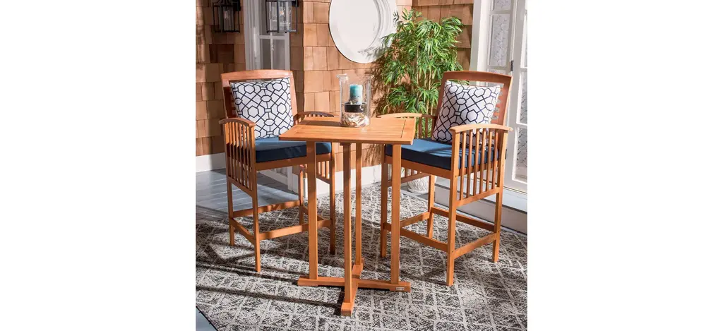 The hottest rooftop bar in Palm Springs inspired the Davies 3-pc. Outdoor Pub Table Set. Crafted in a neutral tone, its contemporary 39.8 inch table and sleek matching chairs with modern upholstery lend instant bistro style to any outdoor terrace or entertaining area.