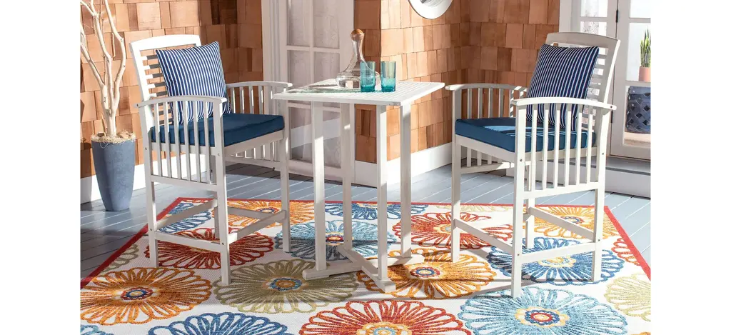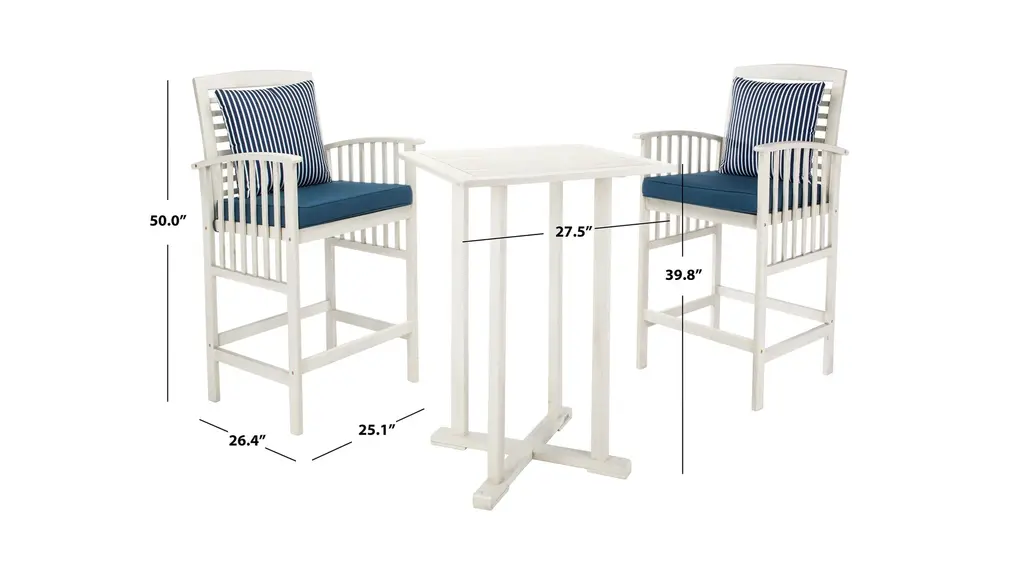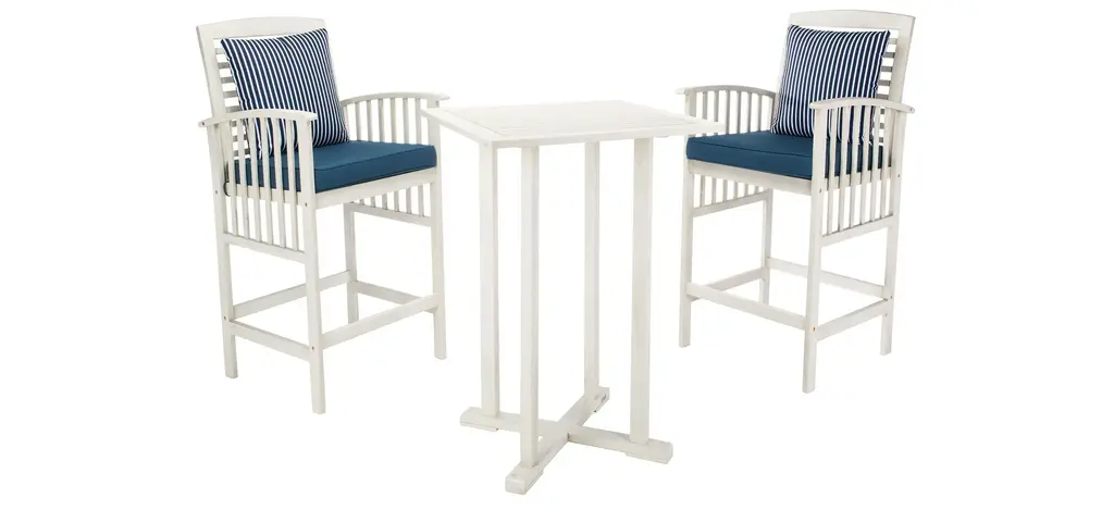 The hottest rooftop bars in Palm Springs inspired this Garretson 3-pc. Outdoor Pub Table Set. Crafted in a warm natural finish, its contemporary bar height table and sleek matching chairs with neutral upholstery and bolster pillows lend instant style to any outdoor terrace or entertaining area.