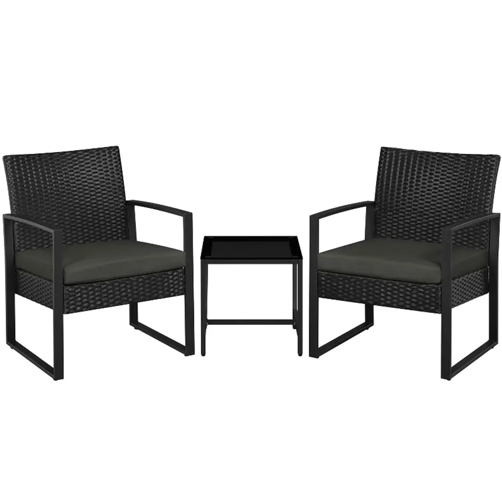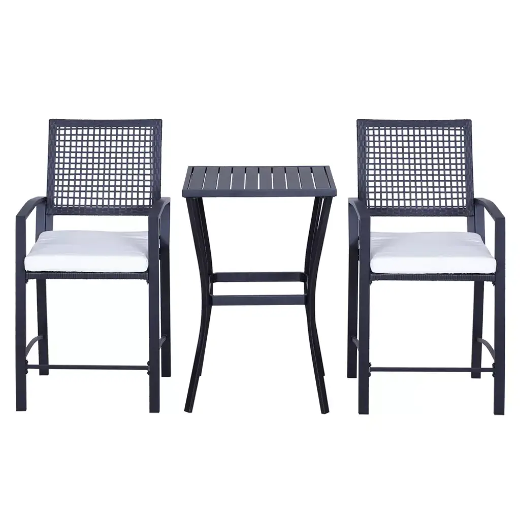 Need a practical place for parties out in the open air? Want to watch the sunrise in the backyard with your sweetheart over breakfast? Outsunny offers the bar-height patio furniture set to make it happen. With two soft cushioned PE rattan chairs and a quick draining slat table, you can place an outdoor sitting space as cozy as your favorite café. Offering all the hand-woven style of classic rattan, up your outdoor décor game with little maintenance in an all-weather package. Get out, get cozy, get Outsunny.
