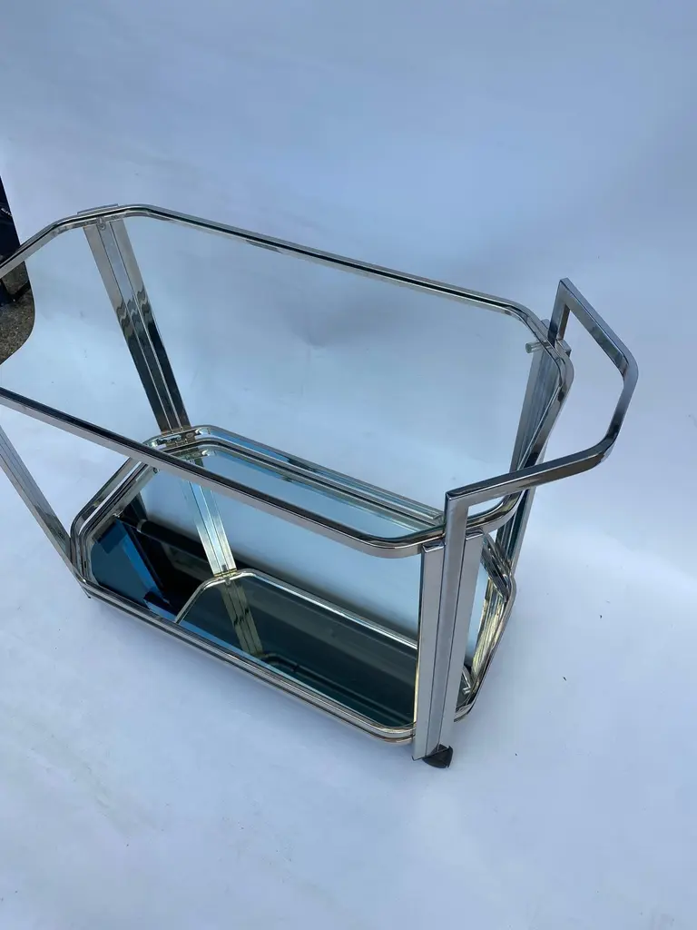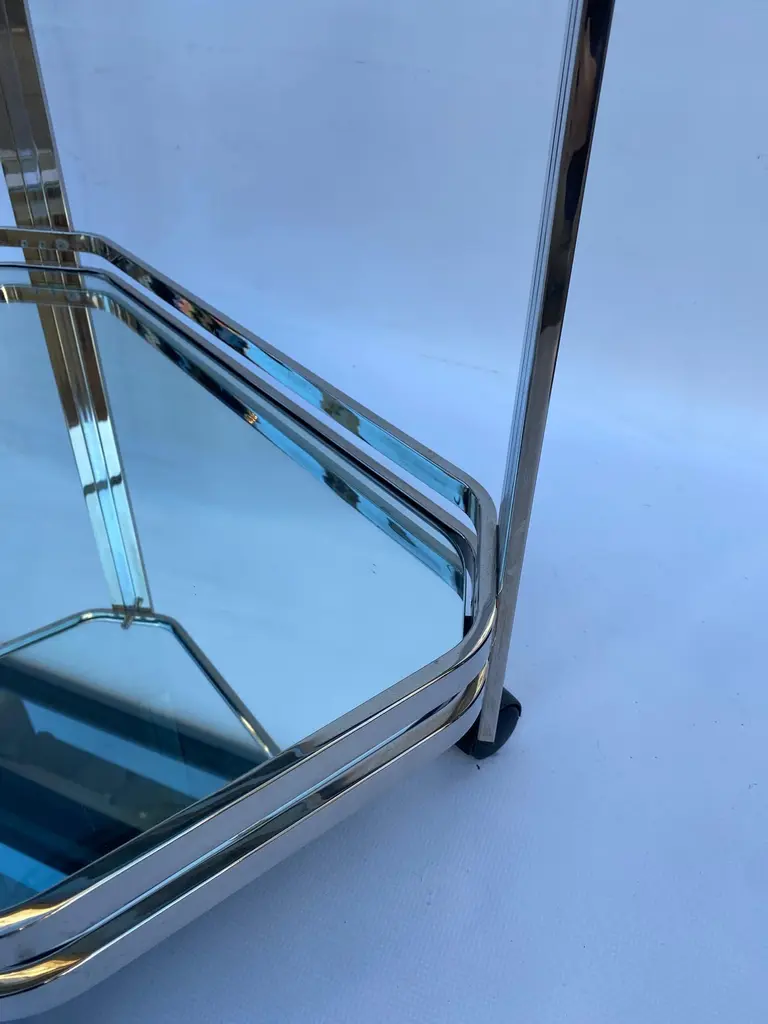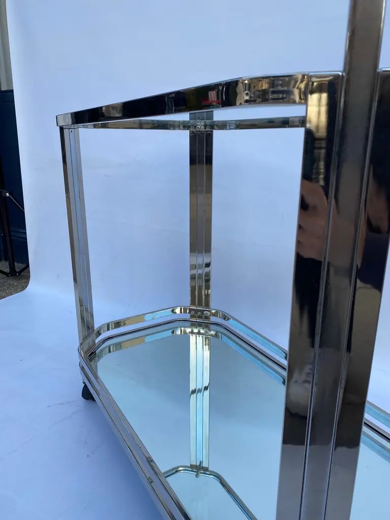 1970s Bar Cart Drinks Trolley Chrome Table Romeo Rega Glass Hollywood Regency
