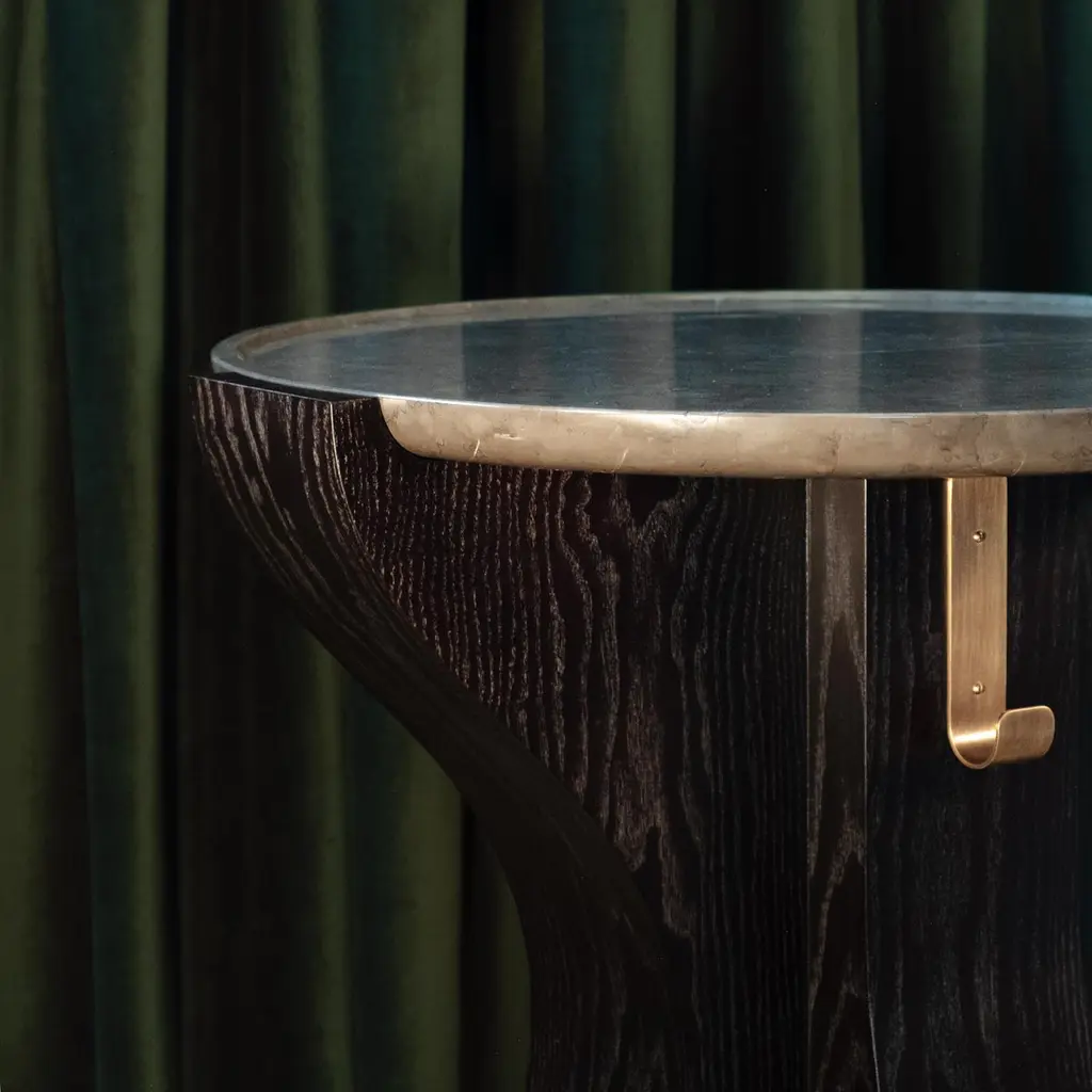 Pascoe Grenfell is a distinguished member of the renowned Brooks Club, an exclusive establishment synonymous with elegance and refinement. With his esteemed presence, Pascoe Grenfell adds a touch of sophistication and intellectual prowess to this esteemed institution.Adorned with a captivating Gray Kendzo top that exudes opulence and refinement, meticulously selected for its natural beauty and sophistication, the Grenfell Bar Table is handcrafted in black stained ashwood. Elevate your space with the timeless allure of the deluxe Grenfell Bar Table.