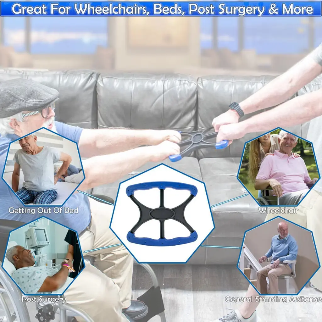 The Ultimate Mobility Solution for Seniors and CaregiversIntroducing the Lift Standing Aid, a premium-quality portable mobility aid designed to provide exceptional support and stability for seniors, bariatric patients, and people with disabilities. With a weight capacity of 450 lbs, this powerful tool offers quick and easy assistance for individuals who need help standing up. Its compact design and lightweight make it easy to transport and use anywhere, from the living room to the car. The Lift Standing Aid is an essential aid for anyone looking to maintain independence and mobility.Our product is perfect for caregivers, offering an innovative mobility solution that provides increased safety and independence for seniors, disabled individuals, and bariatric patients. With its reliable construction and easy-to-use design, the Standing Aid Handicap Portable Bariatric Caregiver is the perfect tool for anyone looking to maintain their independence and mobility.Comfortable and Safe Assistance Anytime, AnywhereWhether you're indoors, outdoors, or in the car, our Lift Standing Aid provides the ultimate comfort and safety. It is an extra aid in bathroom environments, where falls and slips are common. It can prevent painful pulling on the arms and shoulders and keep the body balanced, providing additional safety and security for seniors and those with disabilities.Easy to Use and CleanOur Lift Standing Aid is made of high-quality, durable plastic, which helps ensure the safety of patients and loved ones. It requires no assembly or installation, making it a hassle-free solution for anyone who needs assistance. It is easy to clean and can avoid hand-to-hand contact. You can carry it anytime, anywhere, and use it to stand up on chairs, benches, church pews, and other places.