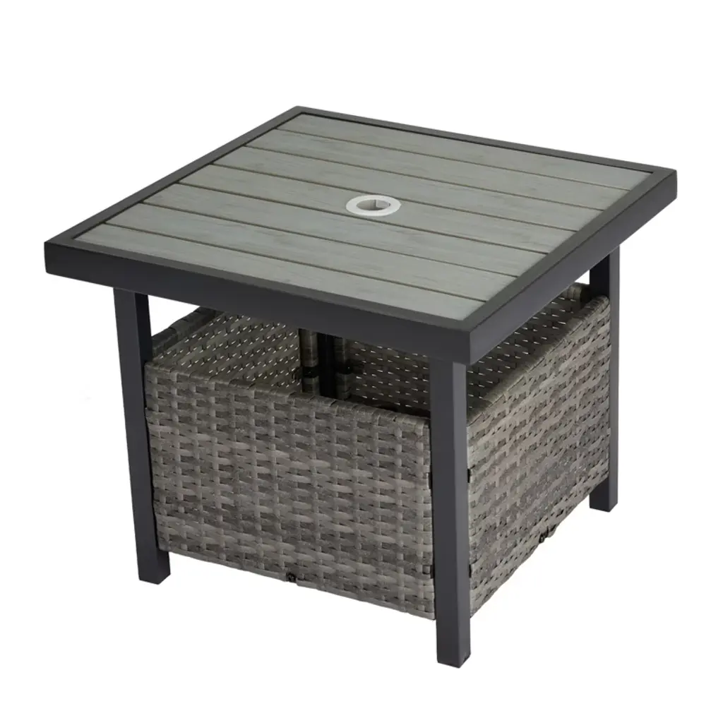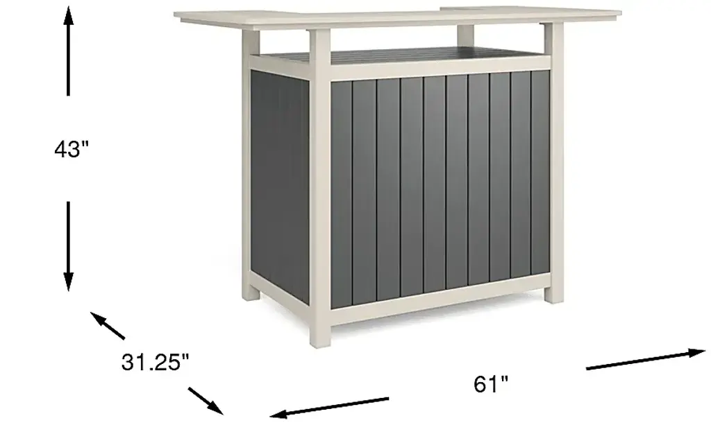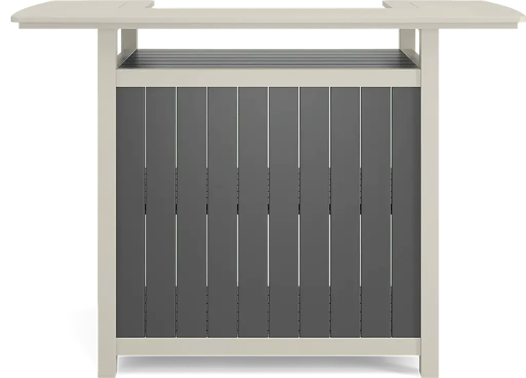 As perfect for serving up summertime libations as it is for hot cocoa in winter, the Addy bar table offers a versatile mainstay for any time of year. Crafted from strong, durable materials for low-maintenance enjoyment, this bar-height table features a neutral gray finish for easy coordination with existing pieces on your patio. Discreet shelving underneath the bar top provides seamless storage for your bar essentials.